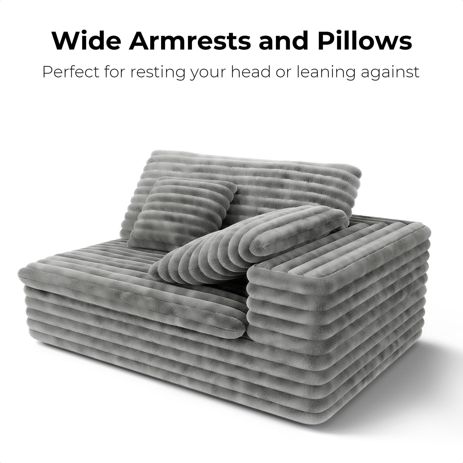 LIKIMIO Boneless Sectional Cloud Couch for Living Room, 112" Oversized Loveseat Modern Sofa with Comfy Cushions, 34" Extra Deep Seat, No Assembly Required, Plush Corduroy Upholstery, Grey