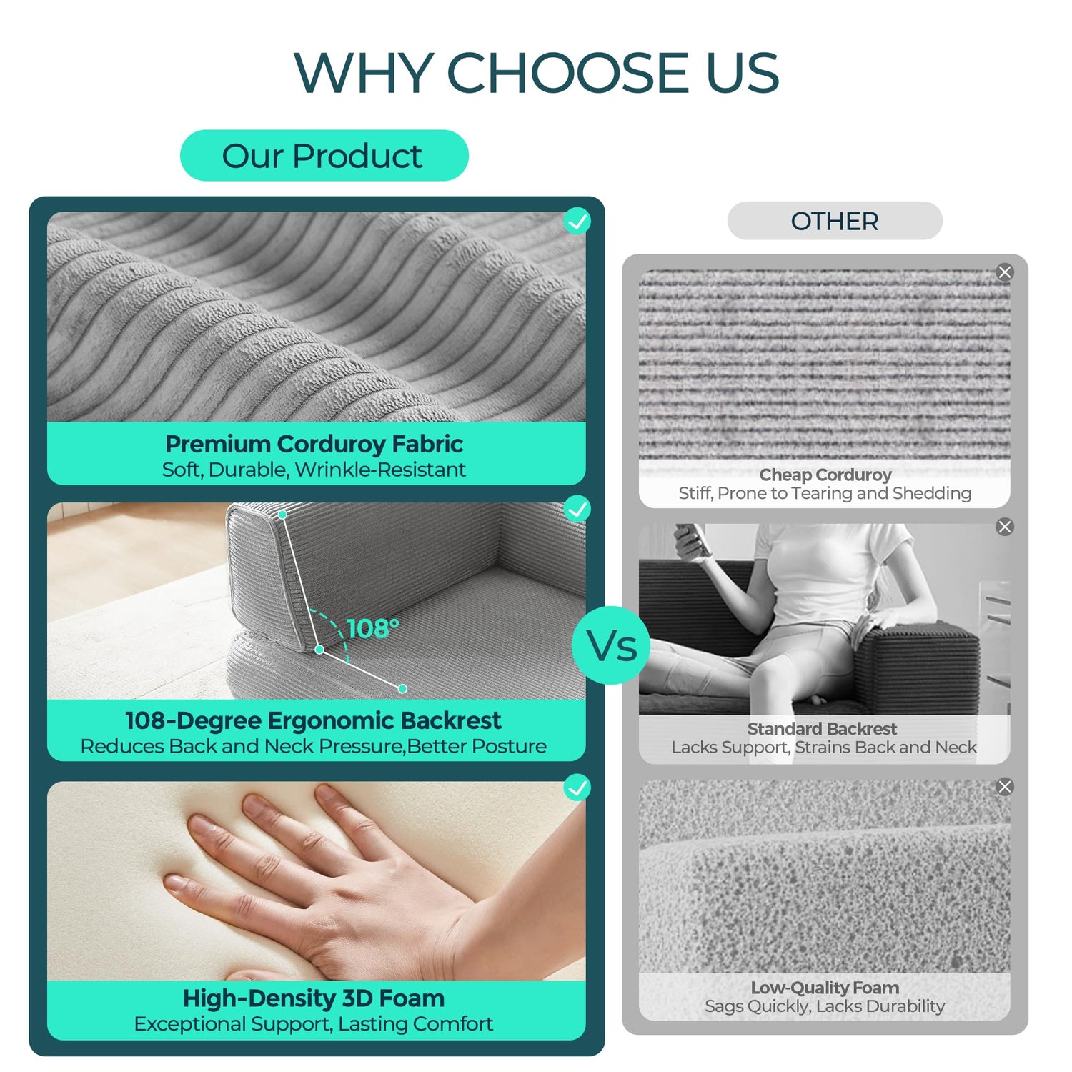 - 【Stable and Non-slip】This floor sofa uses a fixed shape frame to prevent the sofa from sliding and shifting. The non-slip and breathable fabric used on the bottom of the sofa increases the friction between the sofa and the ground, making it more stable.