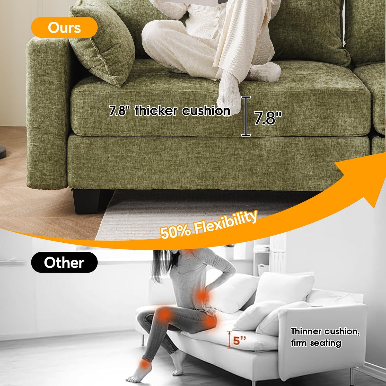 - Premium Quality: Our sofa has 7.8'' thick, made from 25D high-resilience foam, compared to others 18/21D foam,our cushion offers stronger support and lasts longer.The backrest with more filling provides more comfort. This comfy couch can be used for a longer time.