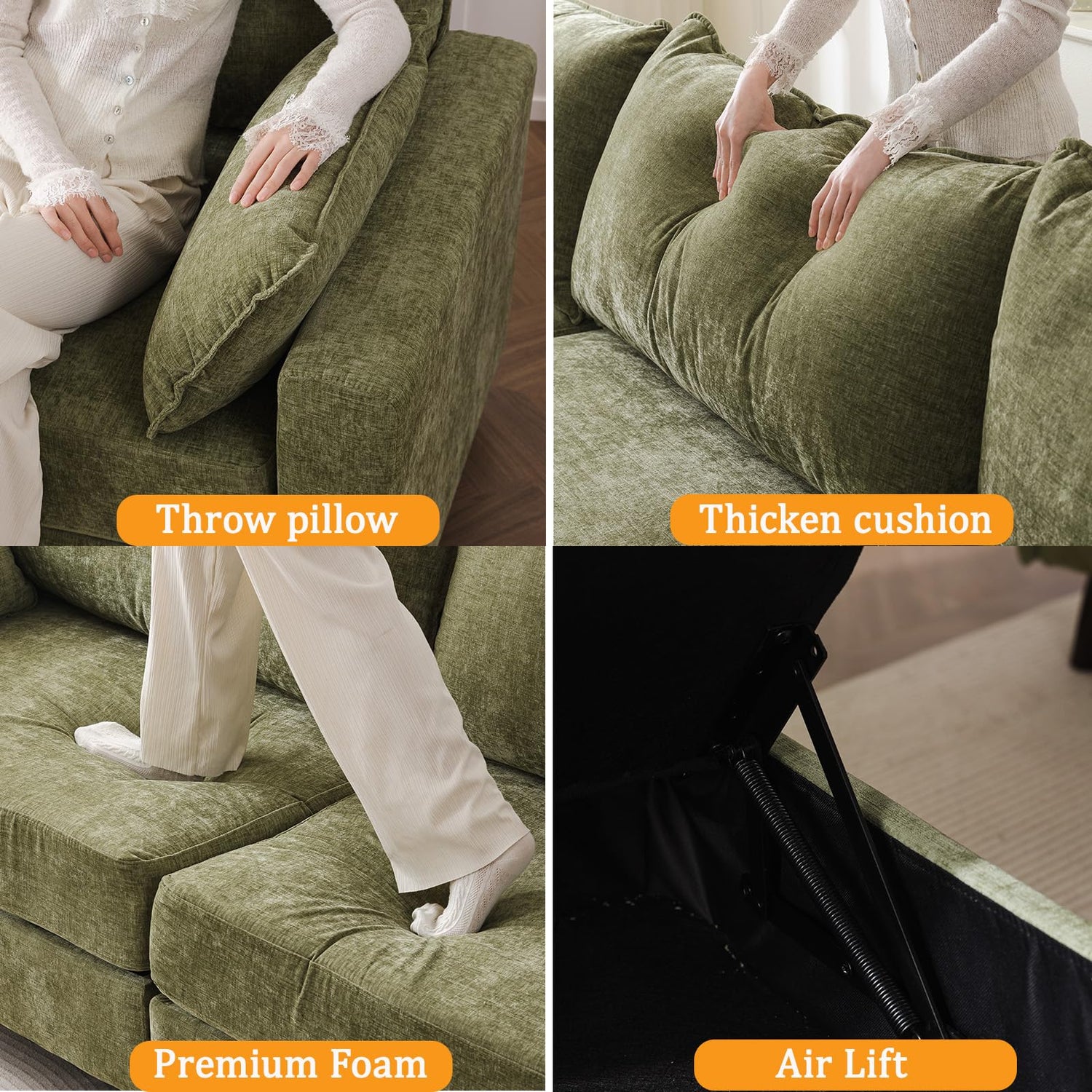 liuyefisher 53'' Loveseat Sofa with All Seats Storage, Modular Sectional Couch with Deep Seat,Oversized Comfy Couch with Throw Pillows,Single Sofa Chair for Living Room,Bedroom,Chenille,Green