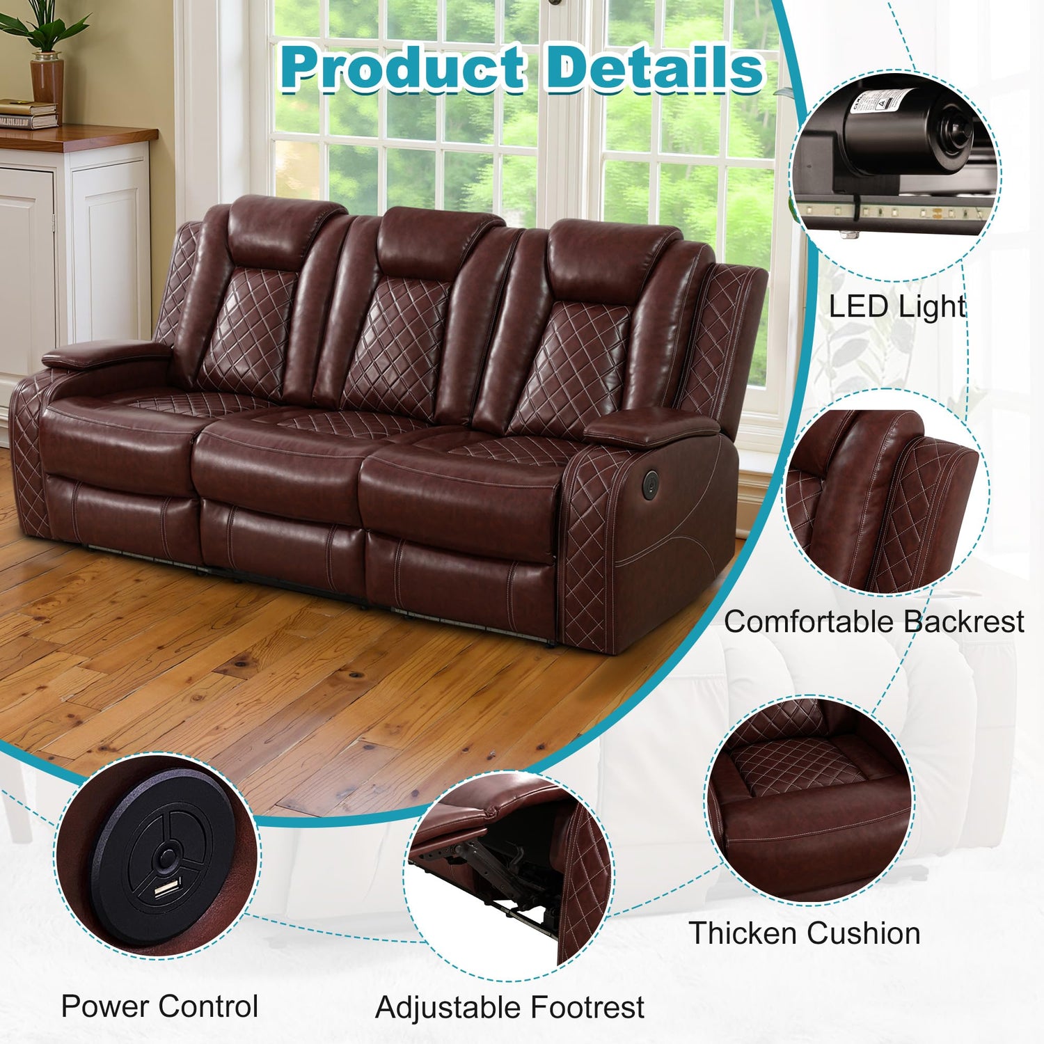 • Intelligent Power Reclining & USB Charging: Each seat is equipped with a high-speed motor for smooth, quiet reclining. The backrest adjusts manually to your comfort, and the full recline length extends up to 68 inches. USB charging ports keep your devices powered at all times, perfect for movie nights or reading.