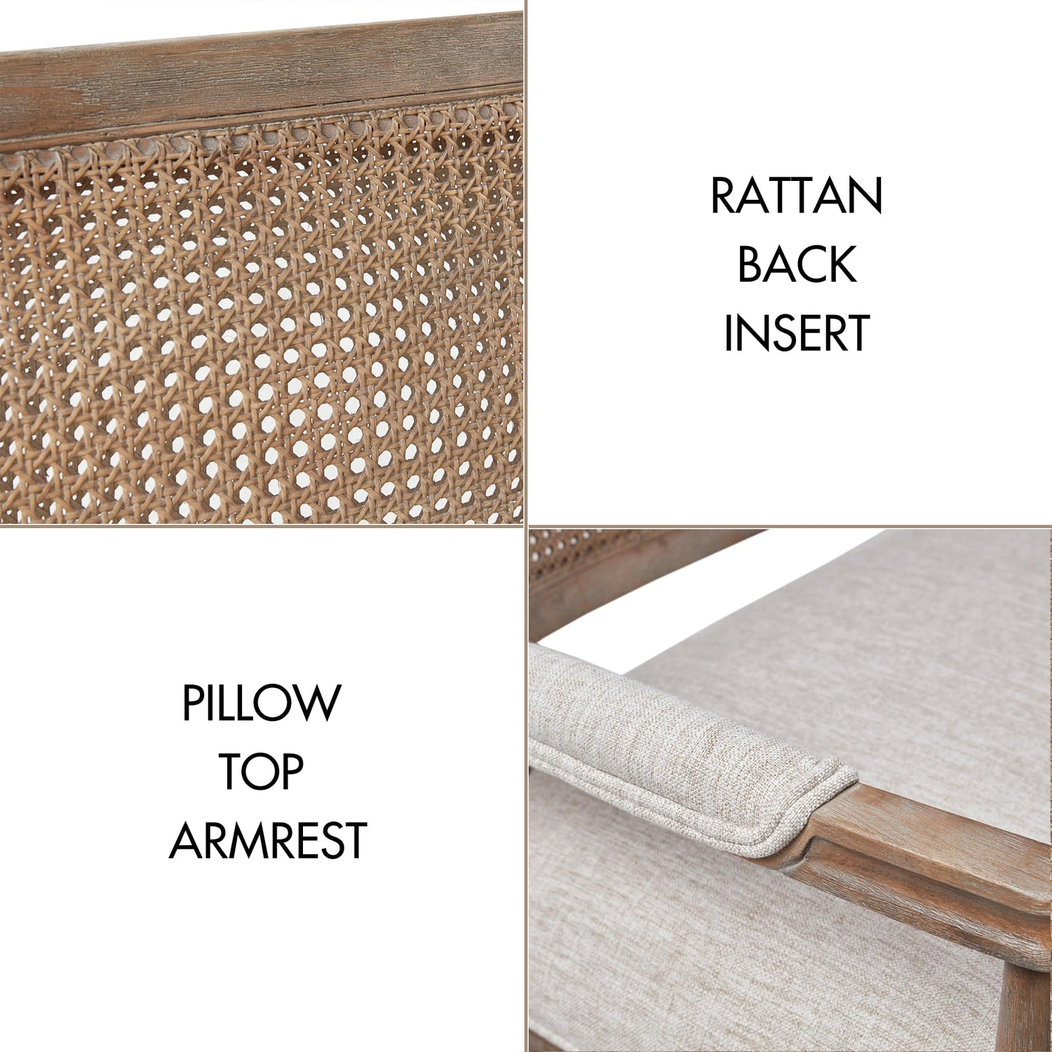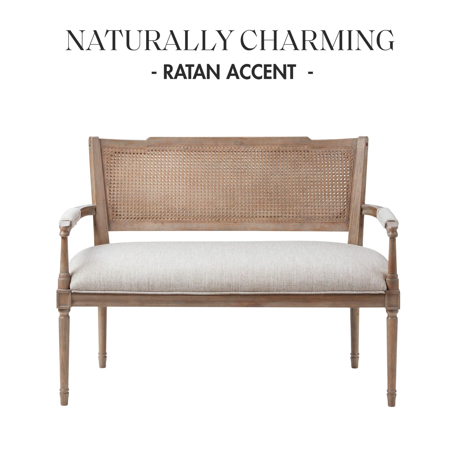 Madison Park Willshire Natural Rattan Settee, Upholstered Seat - Charming Country Design, Rustic Reclaimed Wood Finish, Ratan Insert Backrest & Padded Arm Rest, 47.25" Wide Beige/Reclaimed Natural