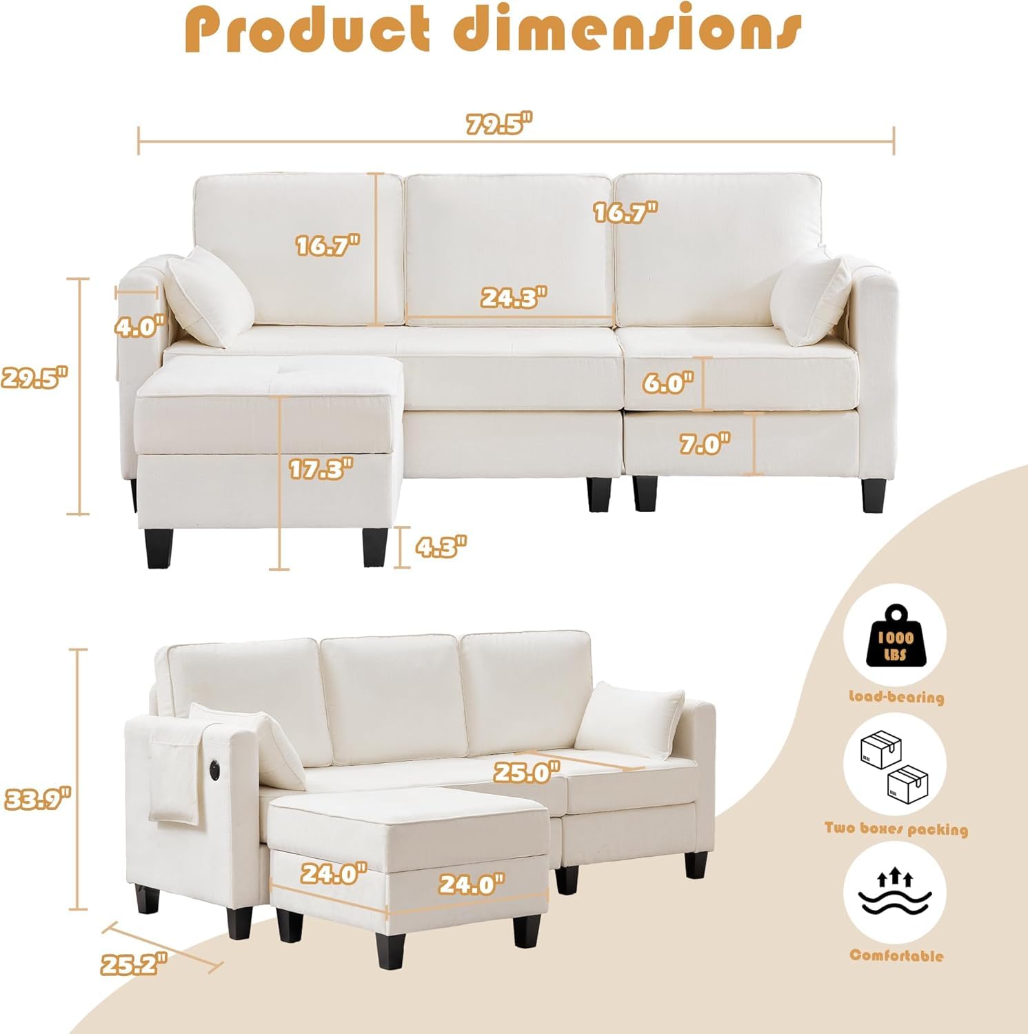 • Convenient Designs: The modular couch comes with ottoman that can be placed on the left or right side as you like,plus two pillows that transform into comfortable chaise lounge.Plus,the armrest includes a charging station with USB ports for fast charging