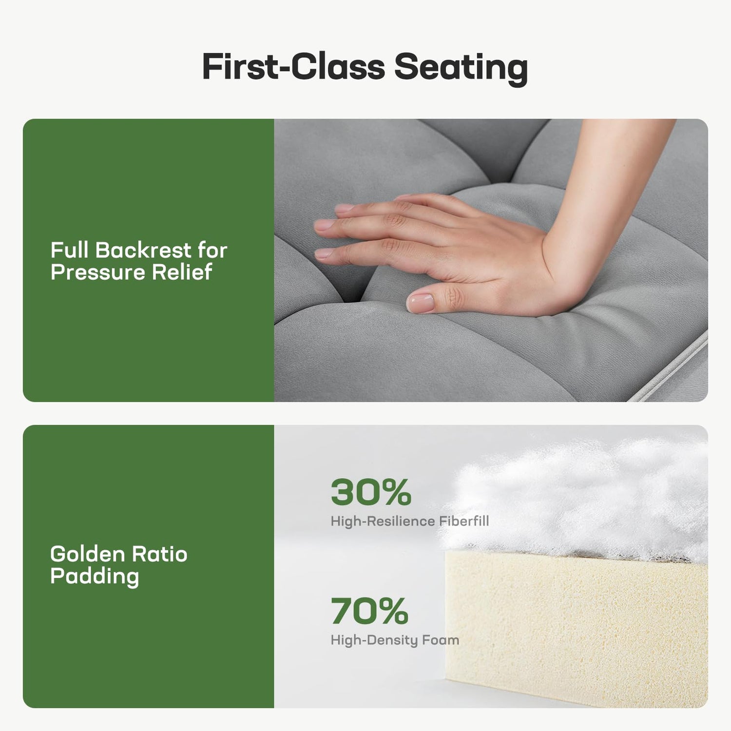 • 3-Level Adjustable Backrest & Bonus Pillows: Choose your perfect angle with 3 adjustable backrest positions: 105° for upright reading, 135° for movie nights, and 180° for full recline or sleeping. Included are two soft pillows for extra neck and head support, ensuring personalized comfort for every activity. Whether napping, gaming, or entertaining, this sofa bed adapts to your needs.
