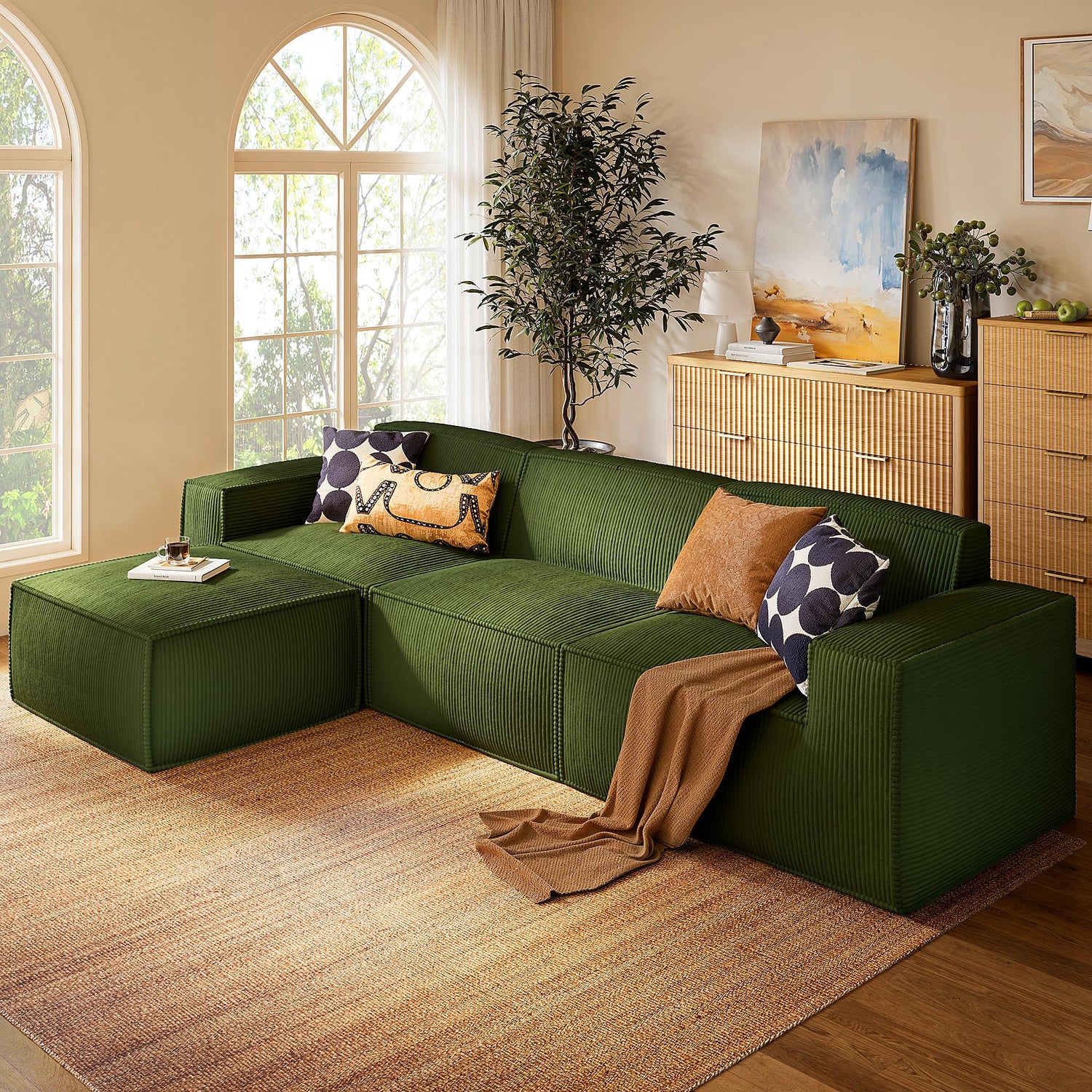 Marsail Modular Sectional Sofa, 111" L-Shaped Modular Sectional Couch with Deep Seat, Freely Combinable Sectional Clound Sofa for Living Room, No Assembly, Plush Corduroy Fabric, Green