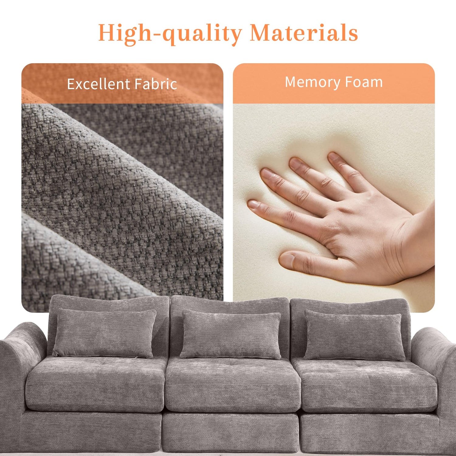 - ๐ ๐ผ๐ฑ๐๐น๐ฎ๐ฟ ๐ ๐ฎ๐ด๐ถ๐ฐ: Easily connect, reshape, and repeat. Say goodbye to bulky, rigid furniture. The innovative modular design allows you to easily snap together sections without tools. Create endless combinationsโL-shaped, chaise longue, spacious sectionalsโto perfectly fit your space and needs. The extra-strong, non-slip base ensures perfect alignment and secure fit, eliminating annoying shifting or gaps. Your sofa will evolve with your life.