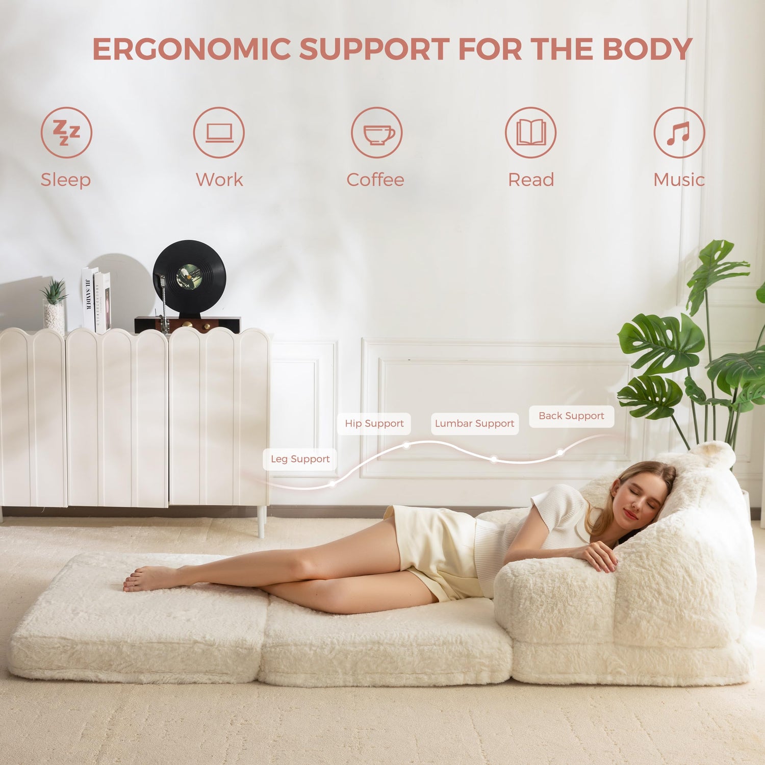 • Soft & Supportive: Stuffed with high-quality, resilience filling, this floor sofa couch offers the perfect balance of plush softness and stable support. Wrapped in faux fur fabric, this floor sofa is luxuriously soft and smooth to the touch