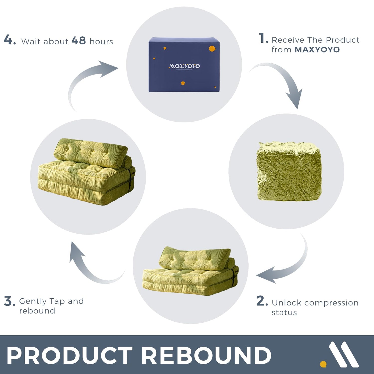- Important Note: The chair bed is compressed and vacuum-sealed to reduce space and carbon dioxide emissions during shipping. Upon unpacking, allow the sofa bed to breathe for 48 hours to regain its original shape and size