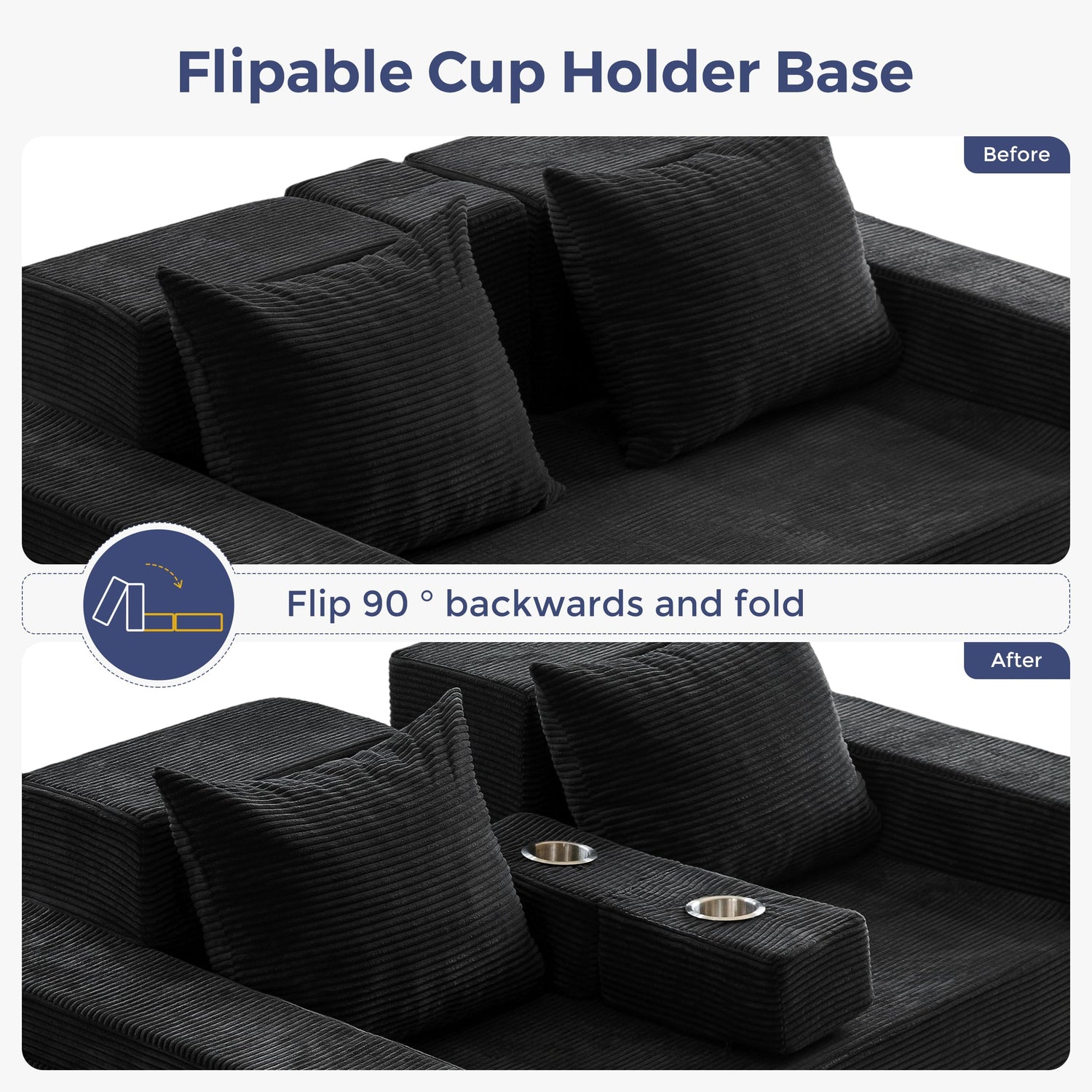 - 4 in 1 Foldable Sofa Bed: This versatile sofa couch easily folds out into a floor sofa bed, giving you flexible seating and sleeping options. It can serve as sofa, sofa with cup holders, sofa bed, and sofa bed with cup holders. Perfect for small spaces, apartments, dorms, or guest rooms.