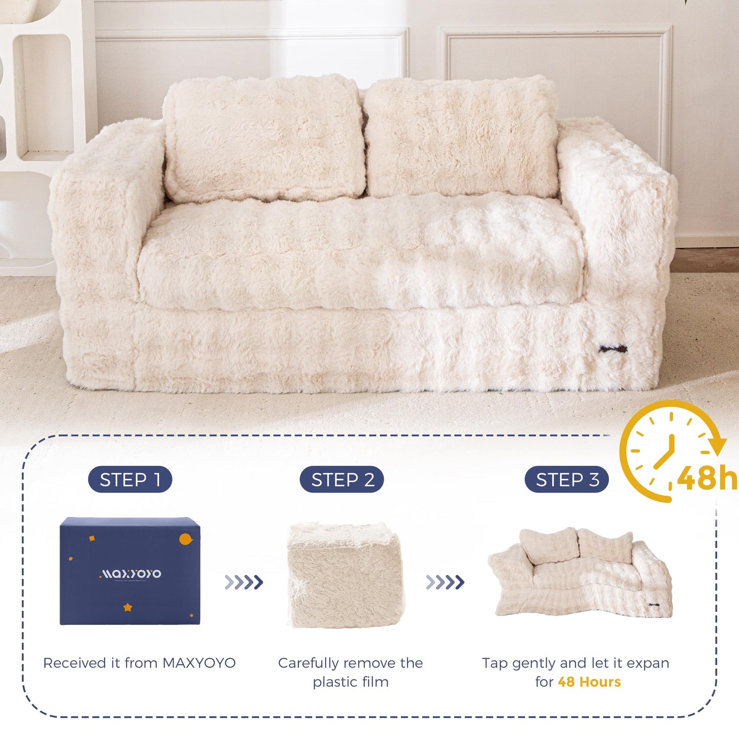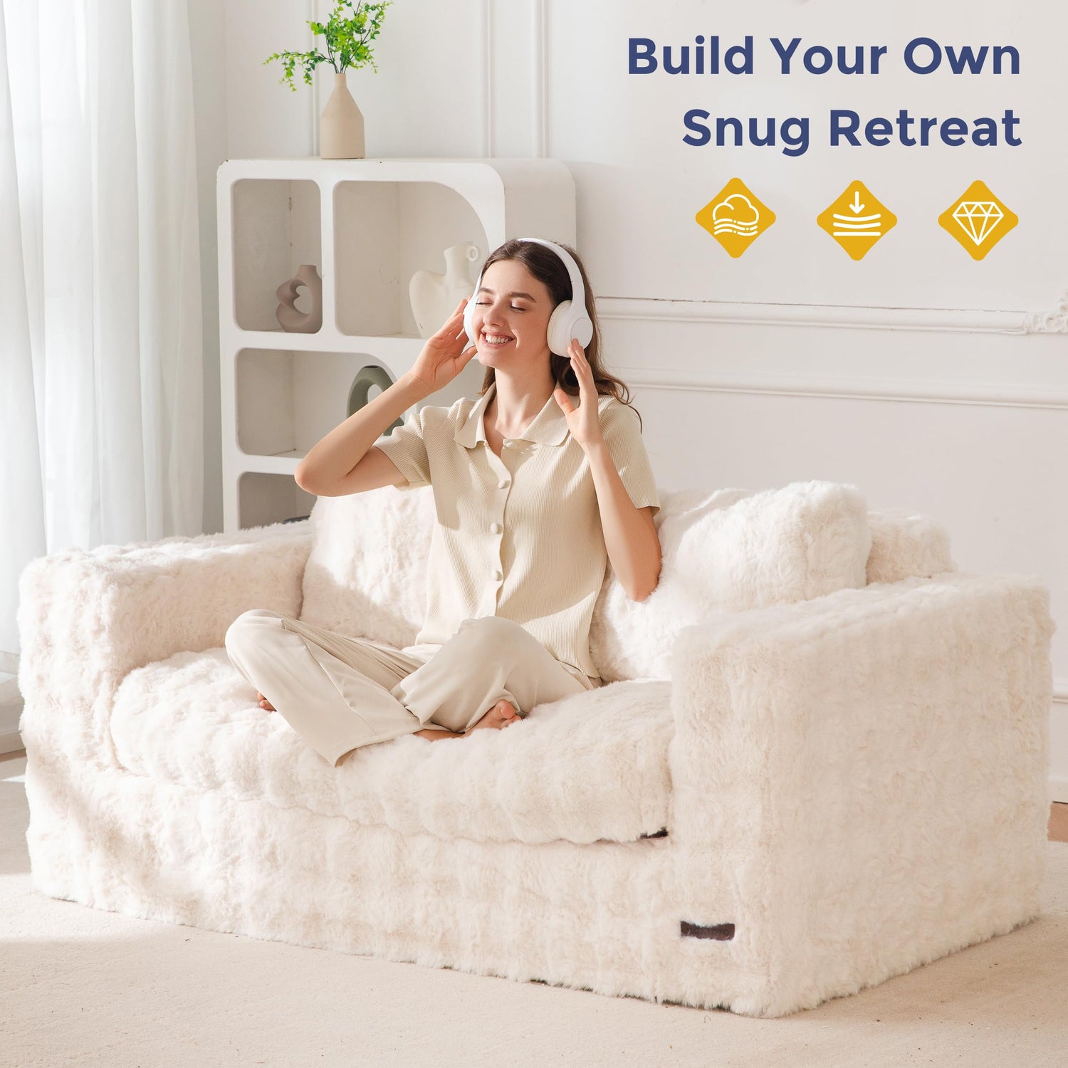 • Ultra-Soft Bubbled Fabric: Upholstered in cozy bubble faux fur, this fluffy sofa couch feels warm, soft, and inviting—ideal for relaxing after a long day