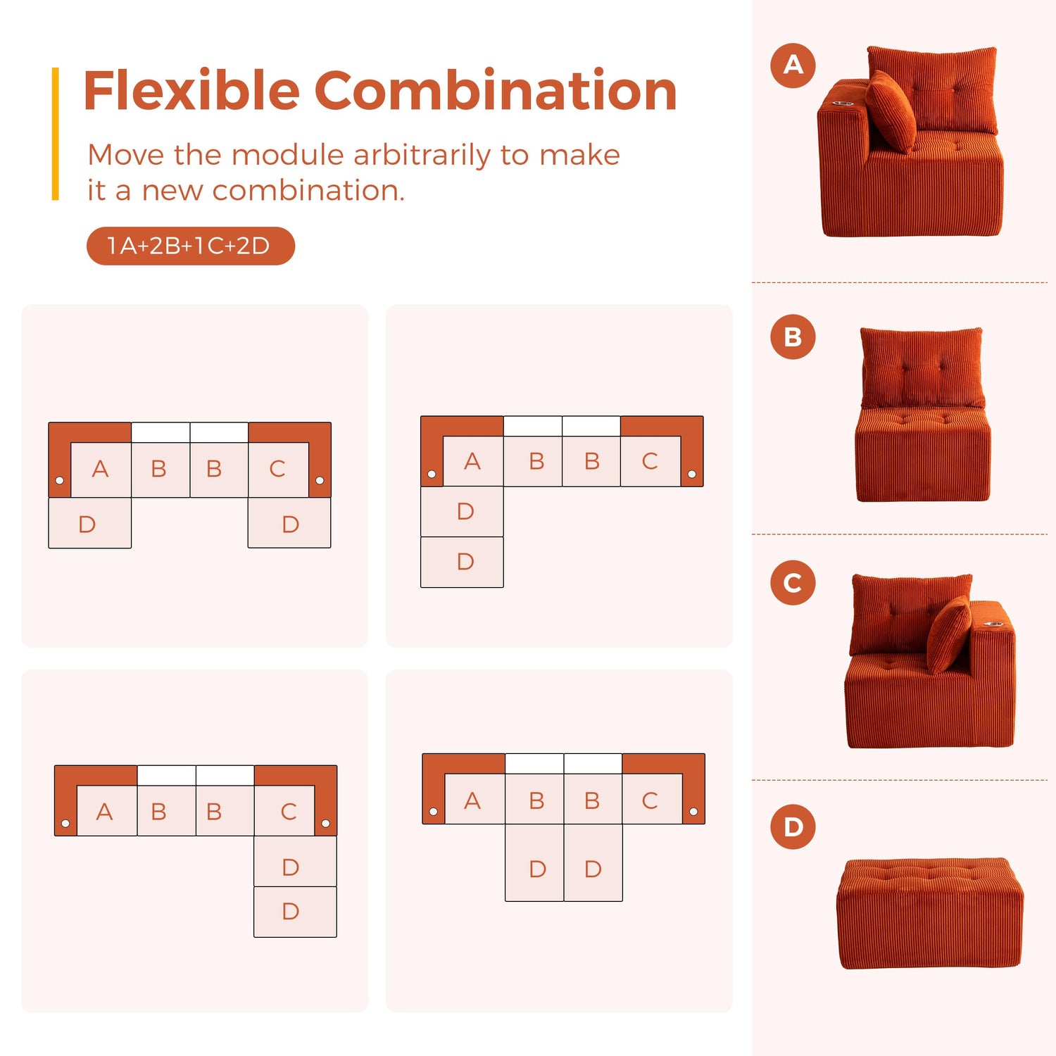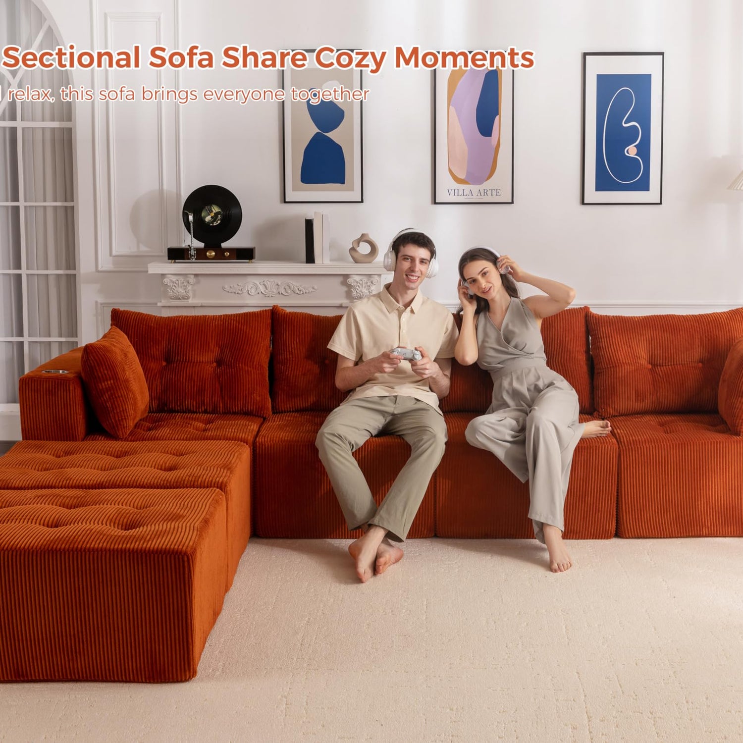 MAXYOYO Modular Sectional Sofa Couch, U Shaped Modern Cloud Couch with 2 Ottomans, Sofa in A Box, Tufted 6-Seat Boneless Sleeper Chair for Living Room, No Assembly Required, Orange