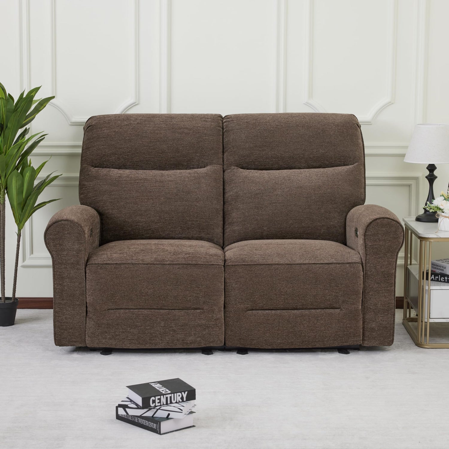 MCombo 64.6" Wall Hugger Power Loveseat Recliner Sofa with USB Ports, Reclining Loveseat for Small Spaces Living Room RV, Fabric PR635M1 (Dark Brown)