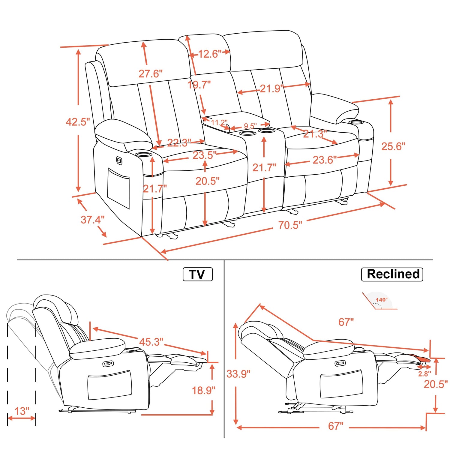 • Power Loveseat Recliner: Reclines to the precise 140° zero gravity position, where your legs rest in line with your heart — feel daily stress melt away as your body floats weightlessly