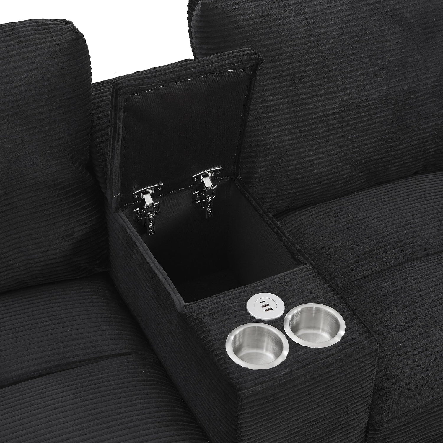 - 【Functional Center Console】- The built-in center console is designed for modern living, featuring a storage compartment to hold remotes or small items, dual cup holders to keep drinks secure, and three USB charging ports—perfect for keeping your devices powered while you relax.