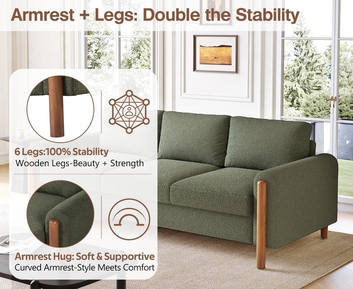 • 【Signature Arc Arms with Solid Wood Legs】:Experience elegant modern design with our sofa’s smooth arc-shaped arms and sturdy cylindrical solid wood legs. This unique combination offers exceptional visual appeal and reliable support, seamlessly blending style with structure.