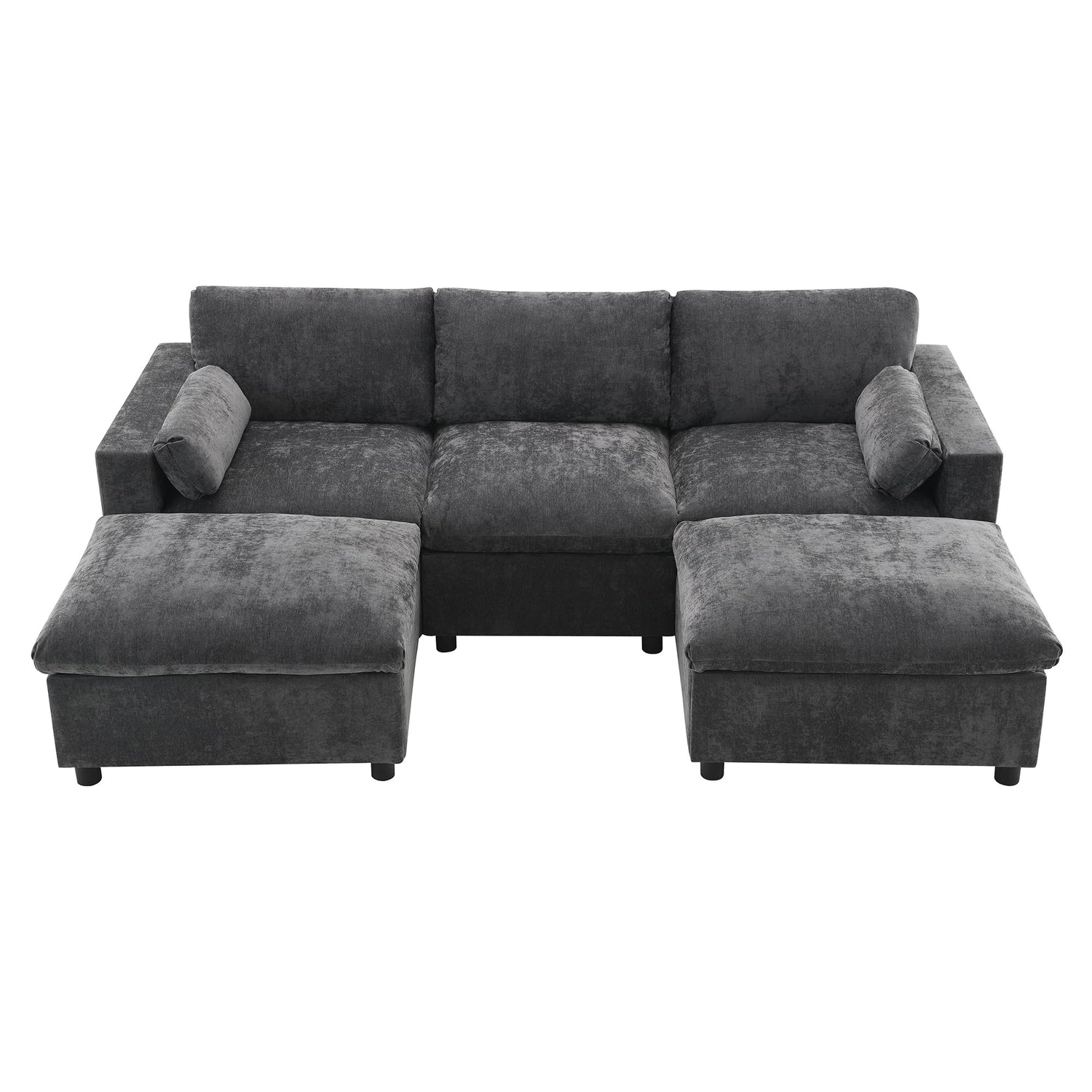 Merax 86.5" Sectional Sofa with Storage Pockets & Removable Ottomans, 5 Seat U Shaped Sleeper Cloud Couch Set, Convertible L-Shaped Chenille Upholstered SofaBed for Living Room and Apartment, Black