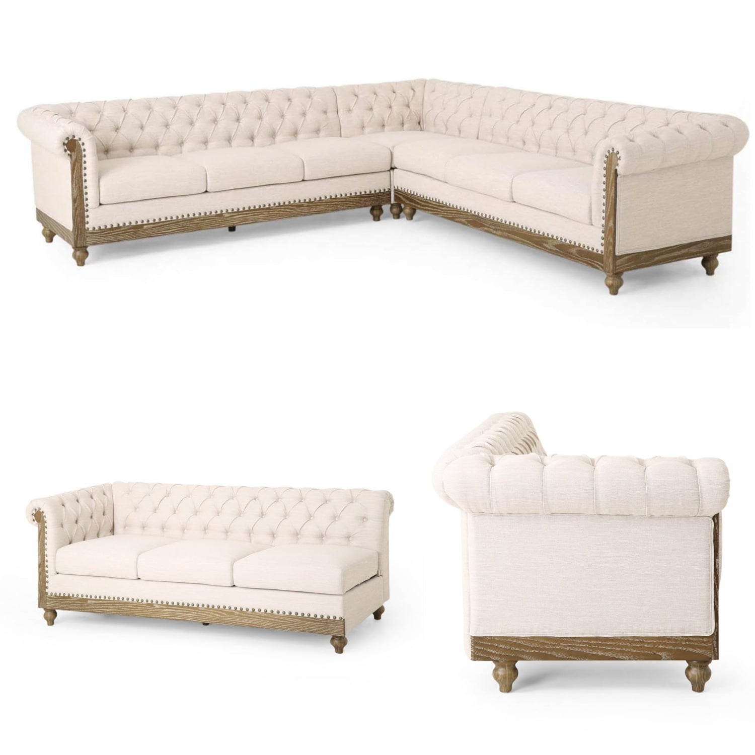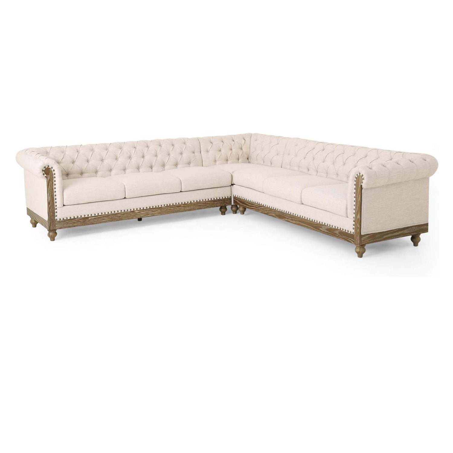 Merax Chesterfield Sofa, Retro Upholstered 6 Seater Rolled Arm Couch for Living Room Bedroom Office, Beige