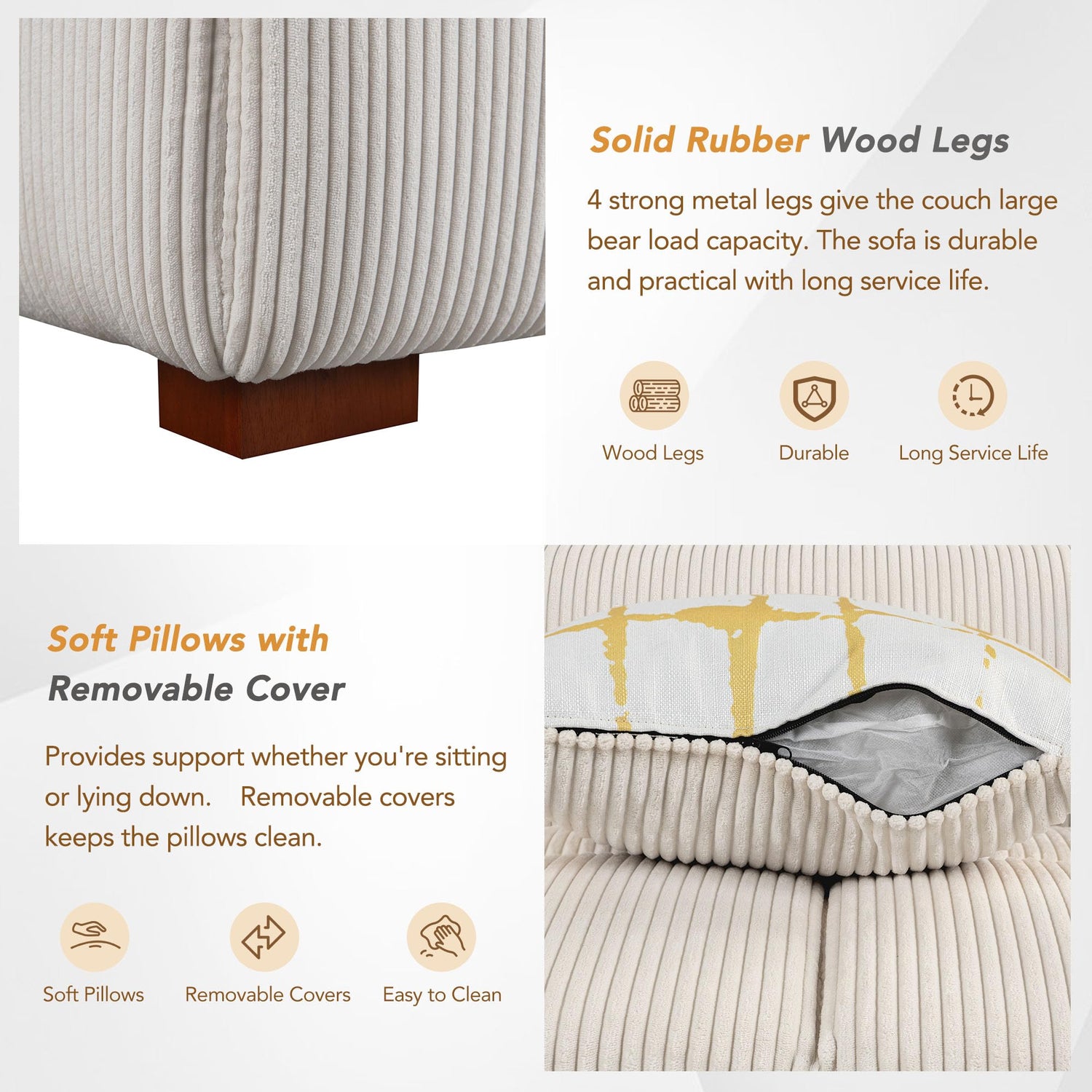 Merax Modern 103.9'' Comfy Couch with 4 Pillows, Corduroy Fabric Sofa for Living Room Bedroom Office Beige