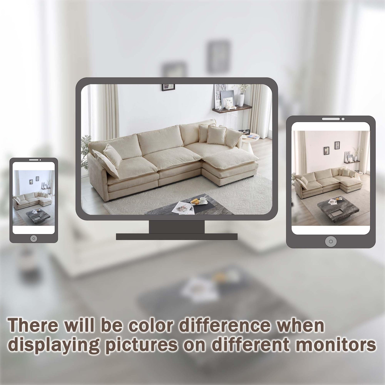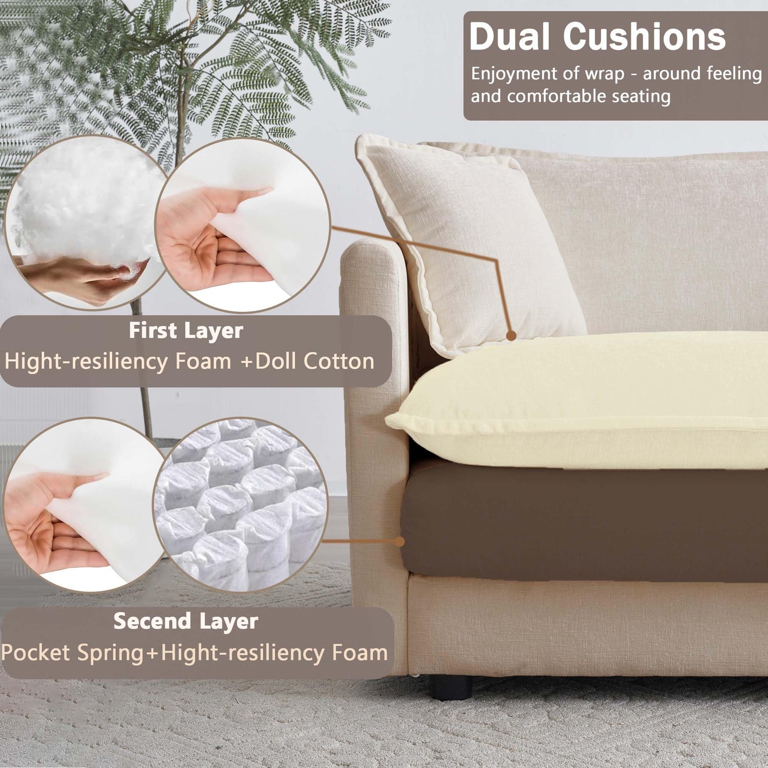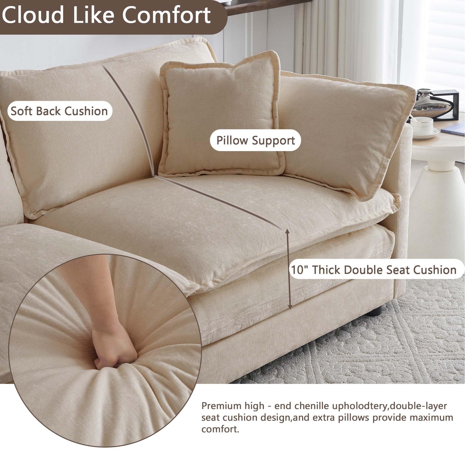 Modular Sectional Sofa, 111.53" L Shaped Chenille Comfy Sectional Couches for Living Room, 3-Seater Cloud Couches with Movable Ottomans, Flexible Combination Modern Deep Seat Sofa (Light Coffee)