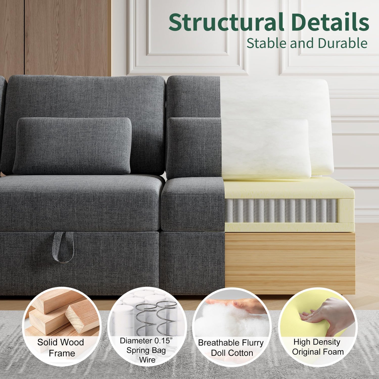 - Unrivaled Comfort & Support - Designed with high-density original foam cushions, premium springs, and high elasticity seating, this modular sectional sofa bed provides a perfect balance of comfort and support. The extra lumbar pillows offer extra waist support, ensuring relaxation for all body types. Perfect for your living room or lounge area