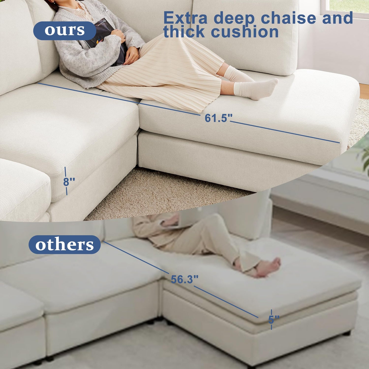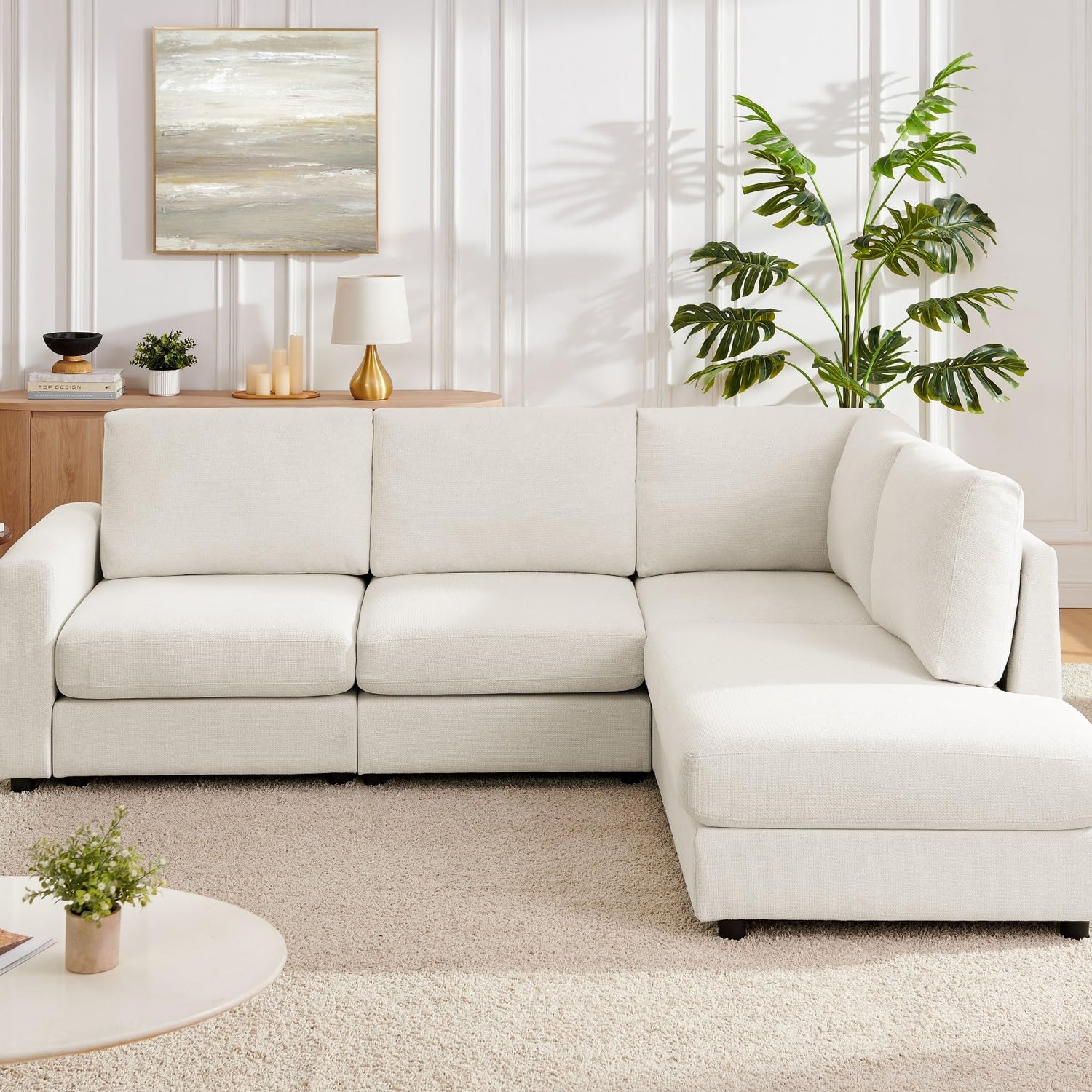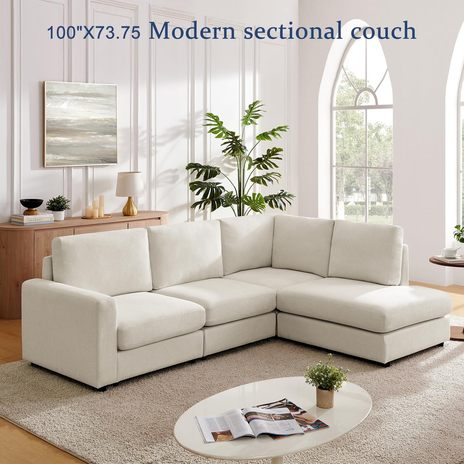 Mofolit 100“ L Shaped Couch with Reversible Chaise Sectional Sofa Corner Couches for Living Room,Apartment and Compact Spaces(Cream)