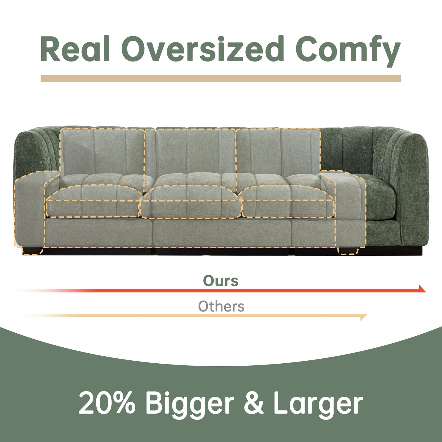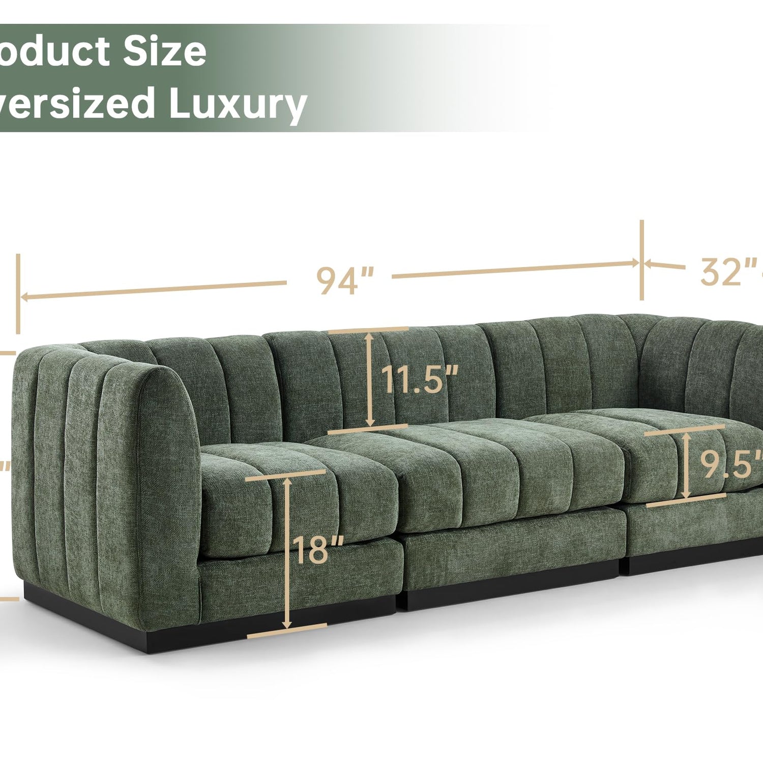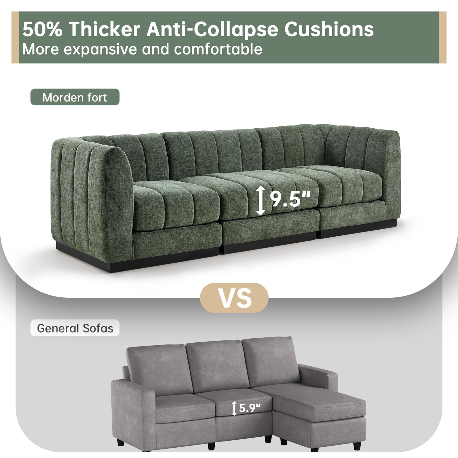 Morden Fort 96'' Luxury Modern Sofa, 3 Seater Modular Sectional Couch, Deep Seat Sofas, Minimalist Style Comfy Couches for Living Room Apartment, DIY Combination, Chenille, Green