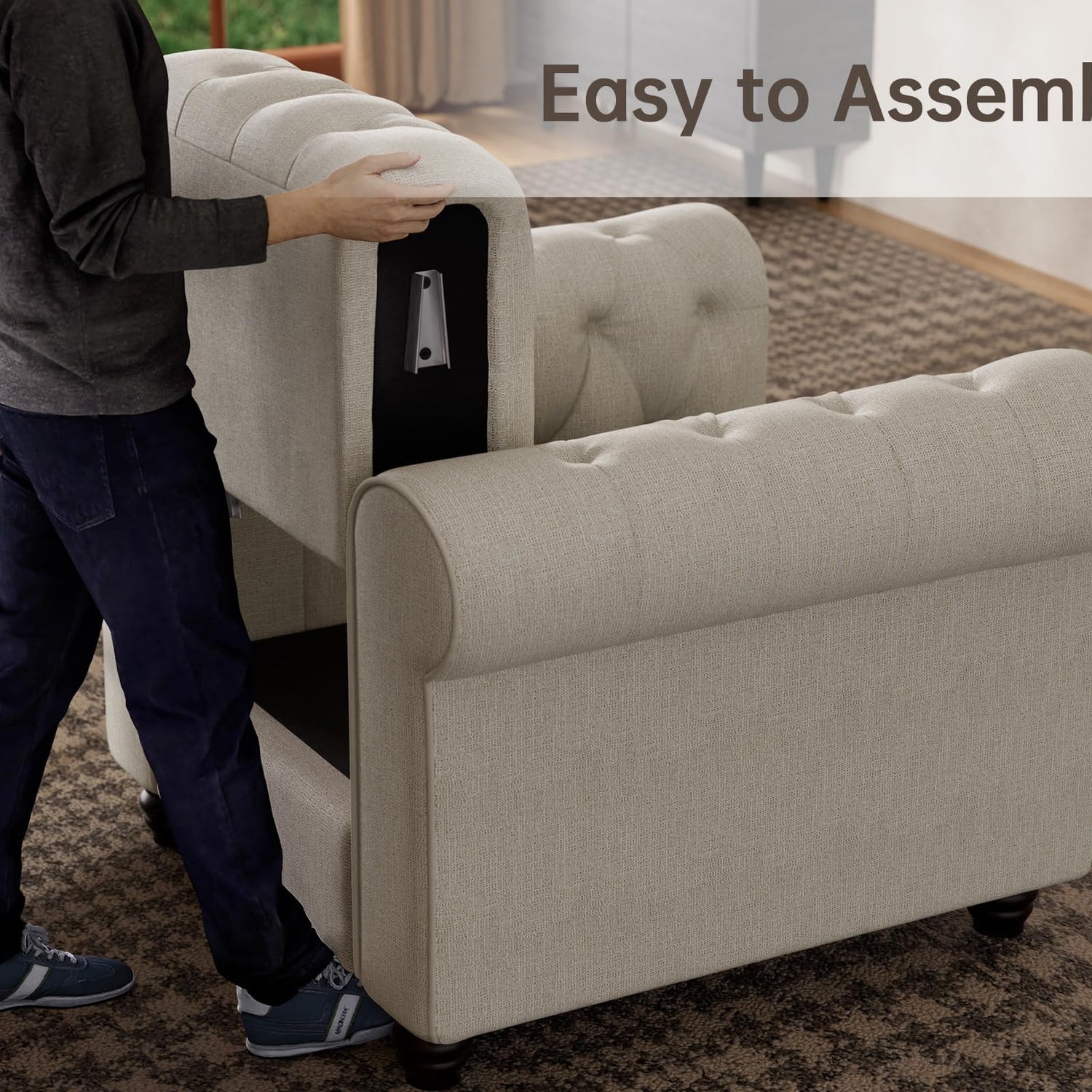- Versatile Color Options: Available in beige, grey, and sapphire blue, this tufted loveseat can match various interior styles and personal preferences. Whether you prefer a neutral tone or a bold statement piece, the Morden Fort Chesterfield Loveseat has you covered.