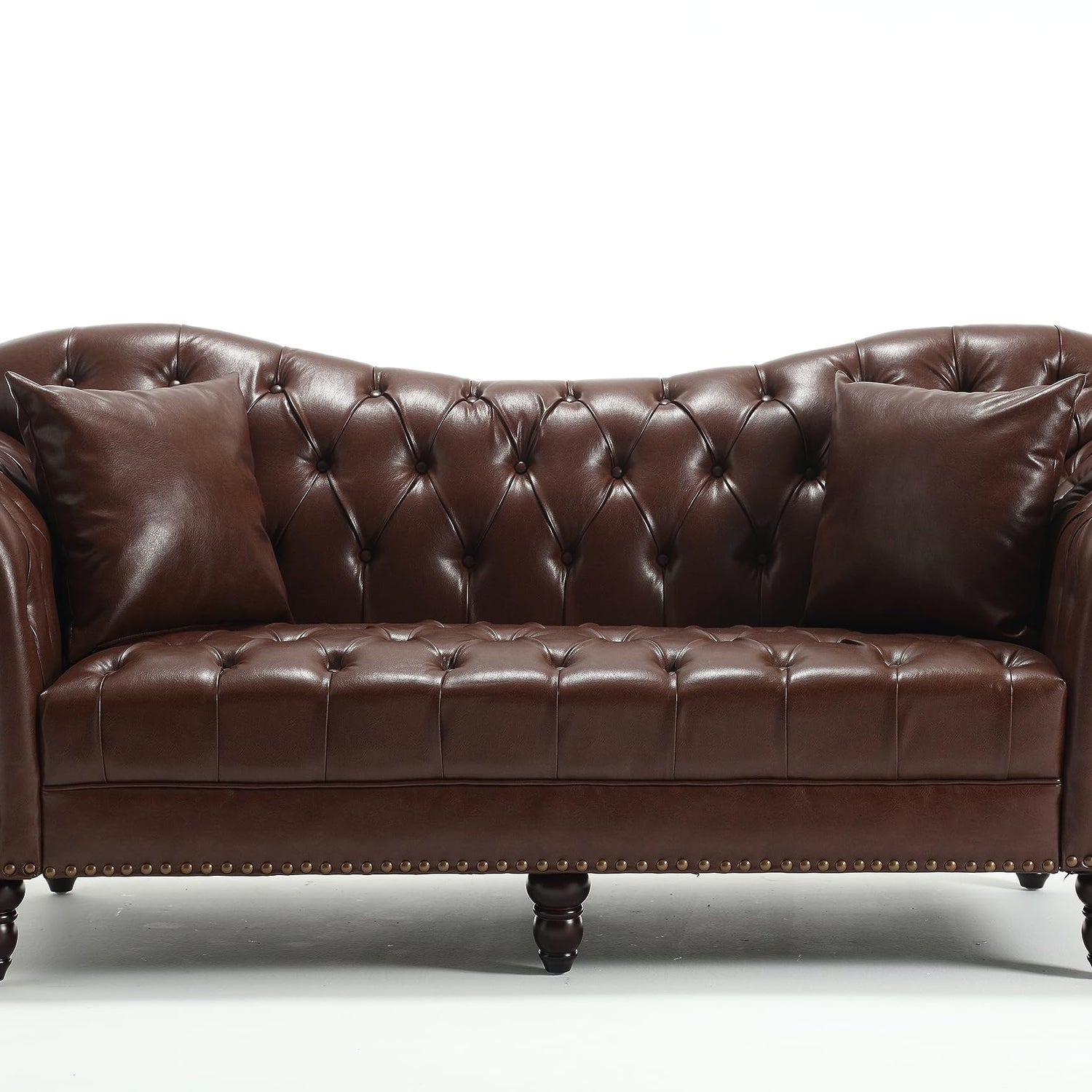 Morden Fort Faux Leather Couch Chesterfield Sofa, 80" W Upholstered Button Tufted Faux Leather Sofa with Pillows, Comfy Couches for Living Room Furniture, Bedroom, Apartment (Brown)