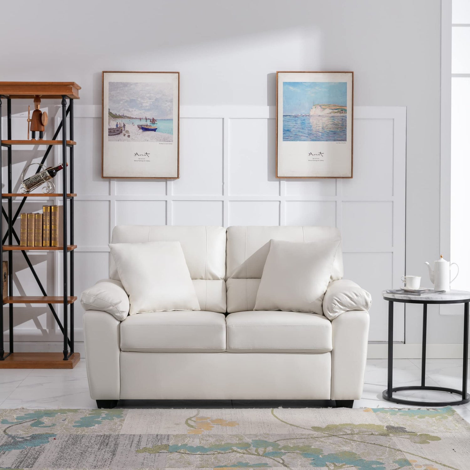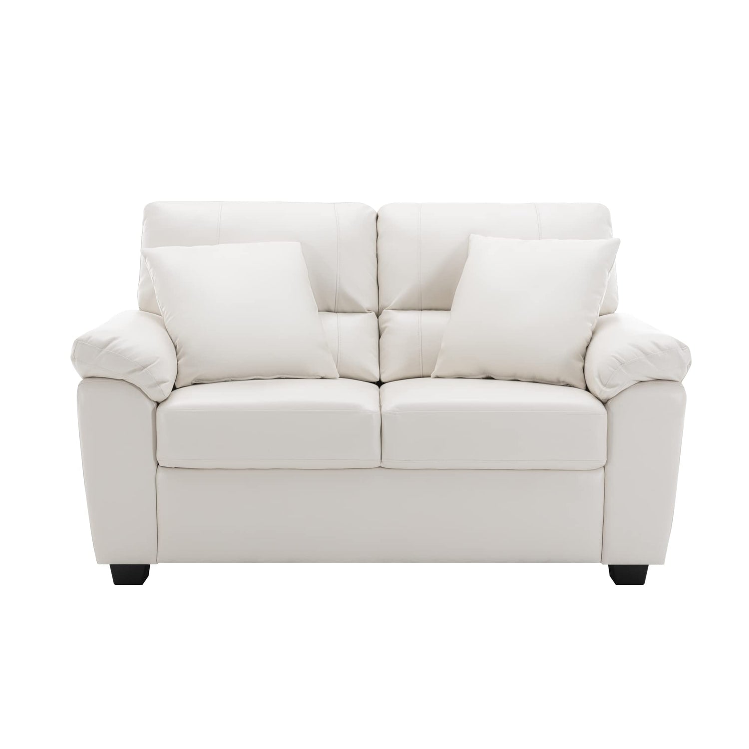Morden Fort Faux Leather Loveseat Sofas, White Modern Luxury and Comfy Furniture Sleeper Couches for Living Room, Apartment, Office, Reading Room