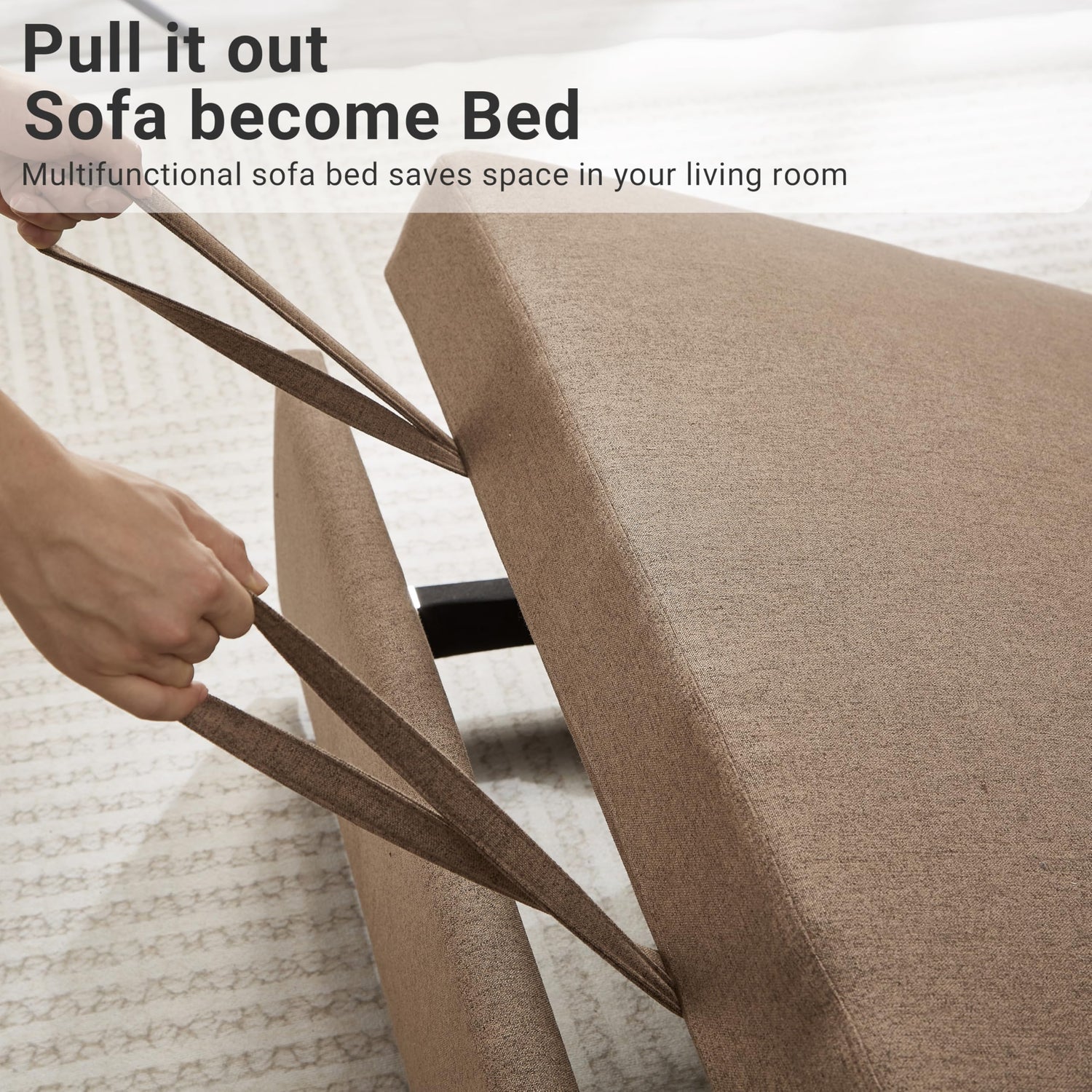 N NOORDENIYA 55.5" Fabric Convertible Sofa Bed, Pull Out Sleeper Sofa Bed, Loveseat Couch with Side Pocket, 3 in 1 Convertible Sleeper Sofa Bed for Living Room, Apartment, Bedroom, RV, Brown