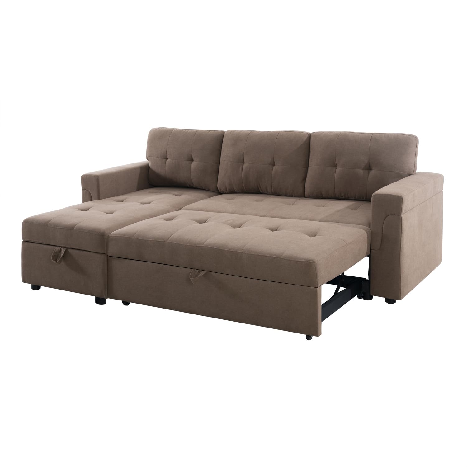 Naomi Home Jenny Sectional Sofa Sleeper with Storage Chaise, Tufted Pull Out Couch with Storage, Sectional Sofa Bed, L-Shaped Reversible Sleeper Sofa with Storage, Mocha,Velvet