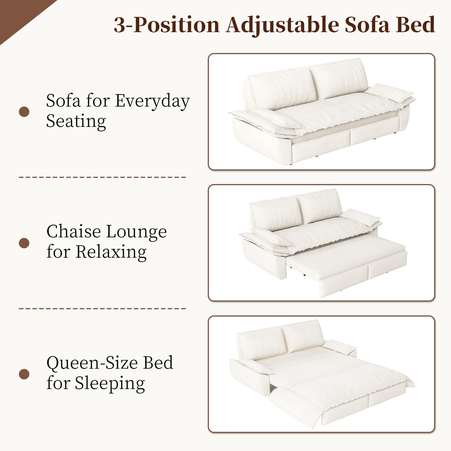 - 3-in-1 Convertible Sleeper Sofa Bed: Easily transform this sofa into a chaise lounge or a queen-size bed (80.7"L x 70.1"W) by pulling out the bed frame. The smooth, noise-free wheels ensure quiet, scratch-free operation, making it perfect for accommodating overnight guests.