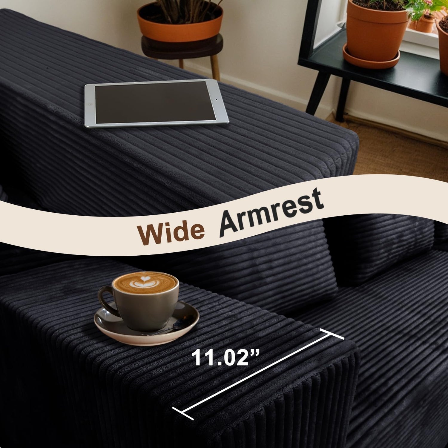 - Premium Corduroy Fabric: Revel in the sweet softness of our upgraded corduroy fabric, offering silky touch and coziness. The superior durability and subtly sheen of this breathable material make our couch with chaise stay looking fresh and charming for years of use, elevating the aesthetics of your space