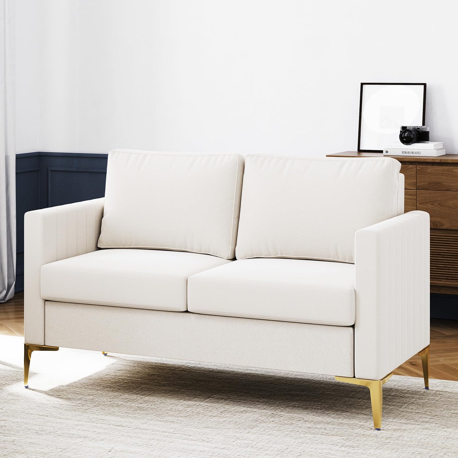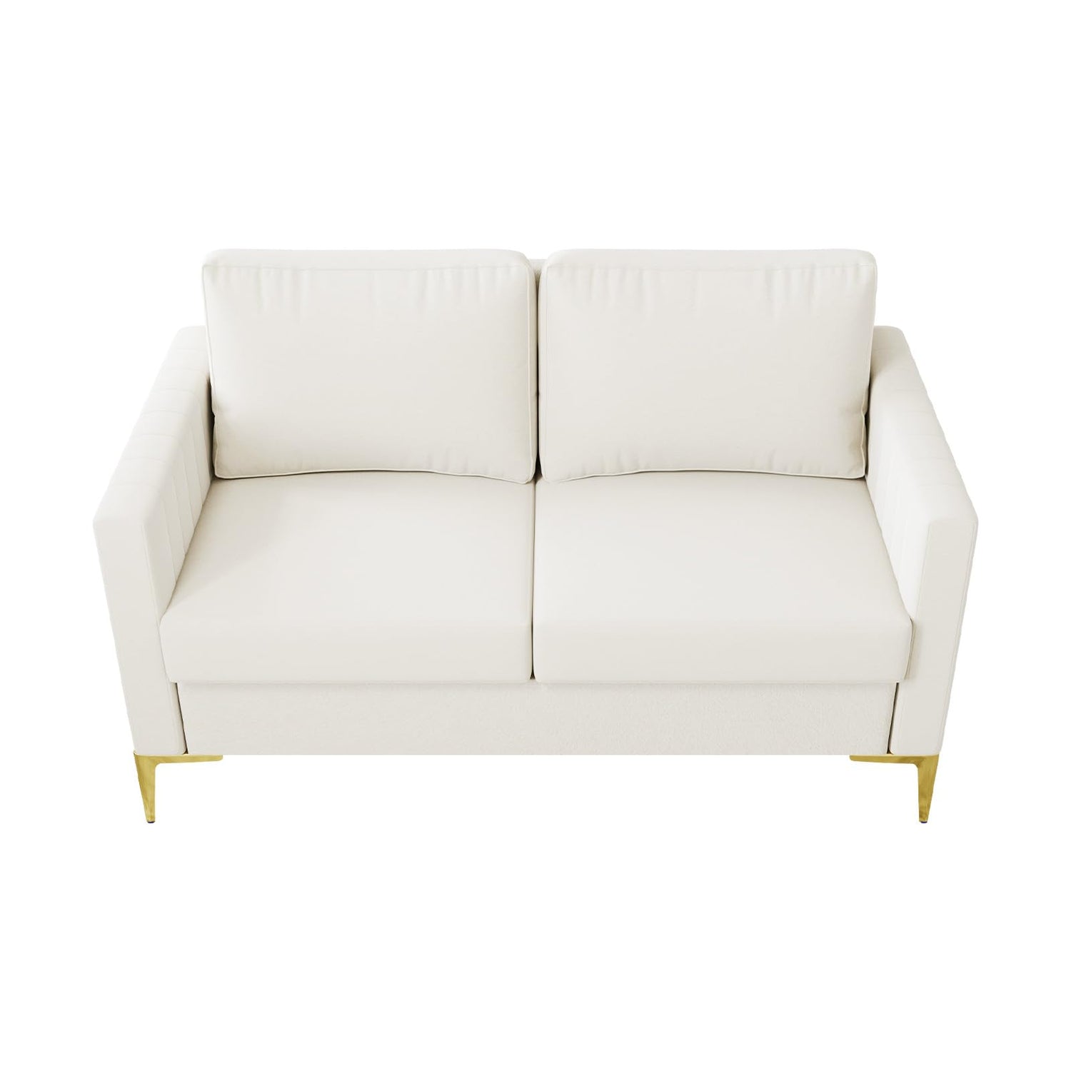 - LIGHT LUXURY DESIGN: This sofa stands out for its ivory color and subtle quilted detailing, paired with a gold metal kickstand that adds a touch of luxury to the space. The modern yet elegant design makes it a visual focal point of any living room.