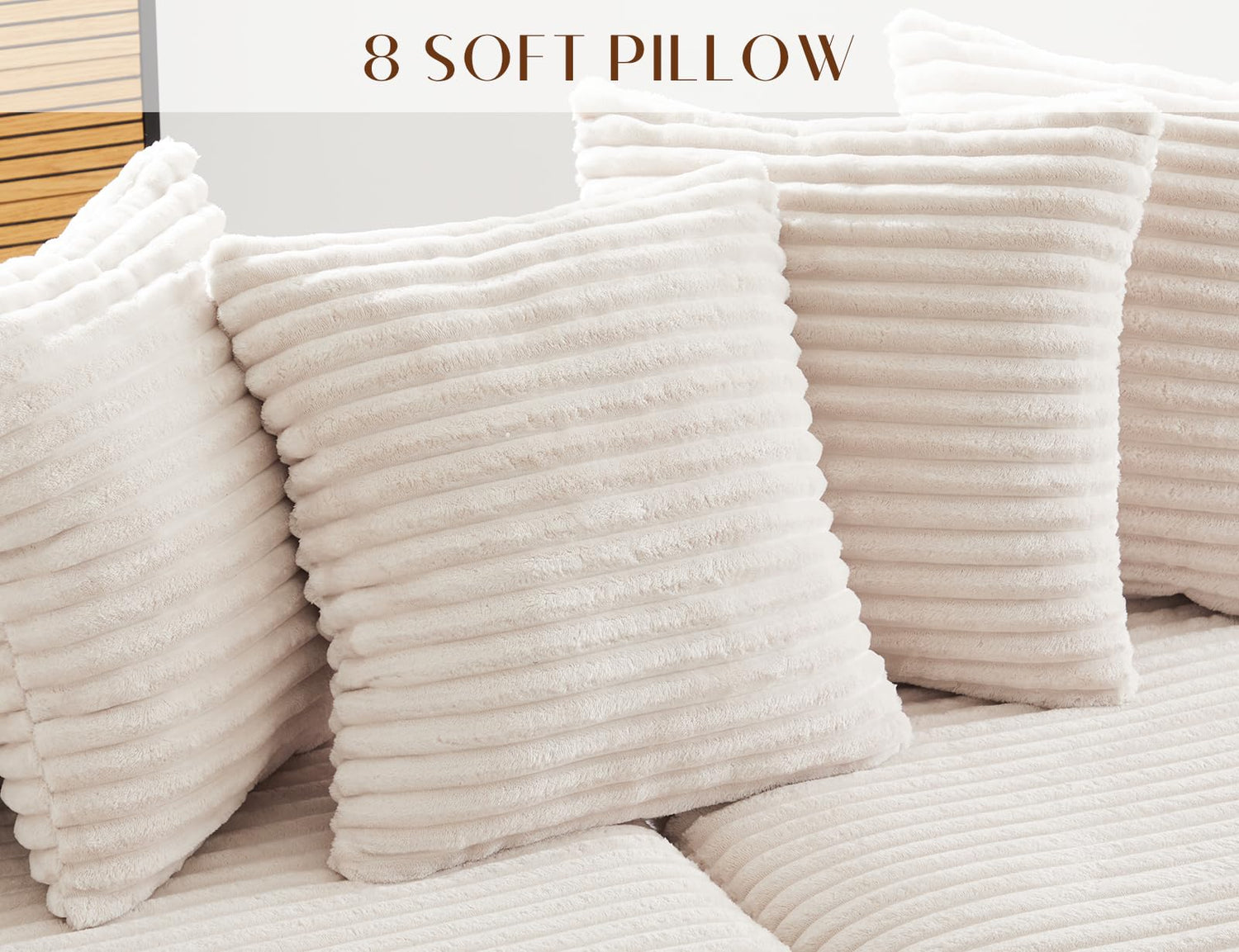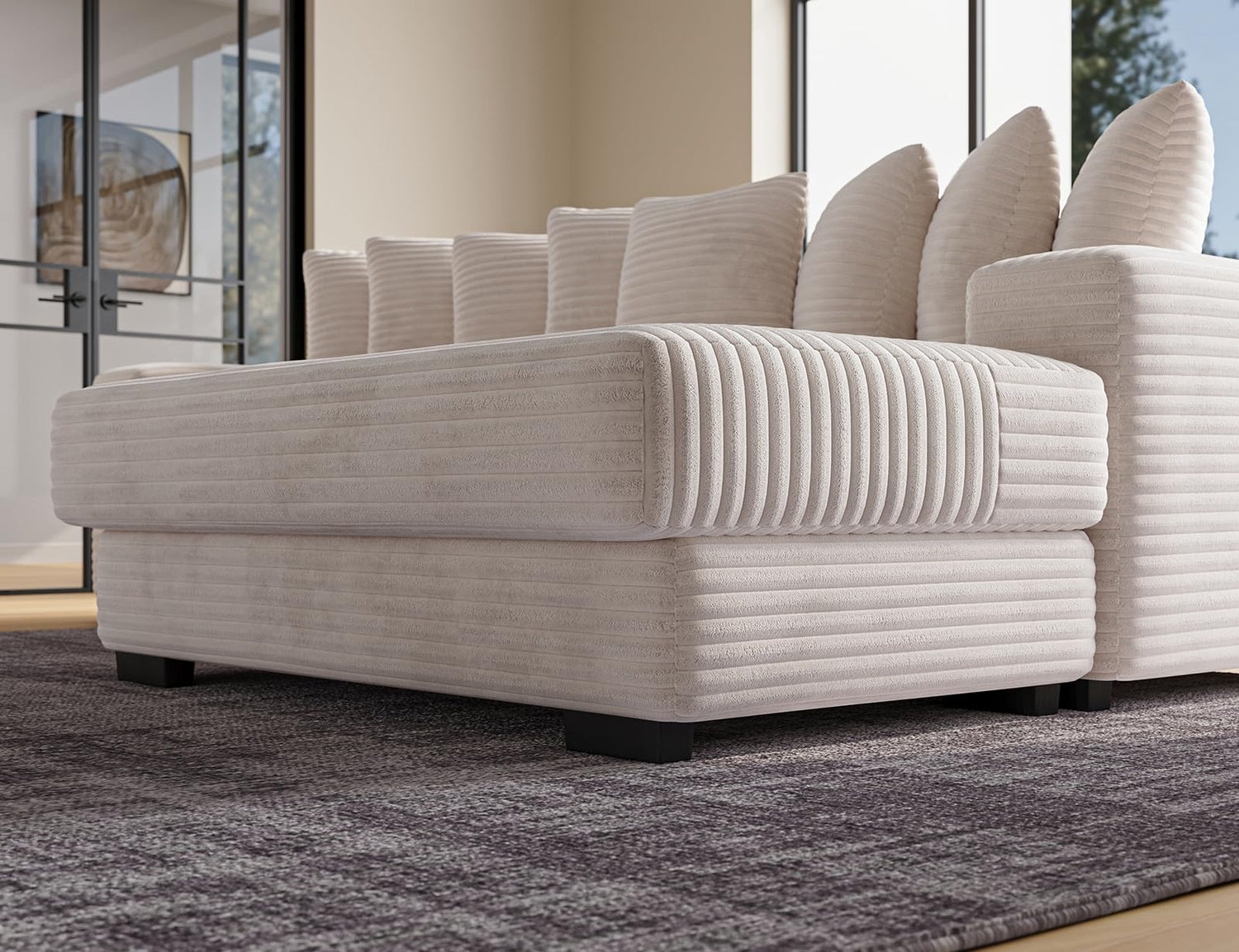 - Cloud Plush Corduroy, Curated Style: Draped in ultra-soft corduroy fabric, this modular sofa brings tactile cloud to your space. Choose from 4 trending colorways to match your vibe, and sink into the cloud-like support of 8 premium thickened pillows – because your deserve royal treatment.