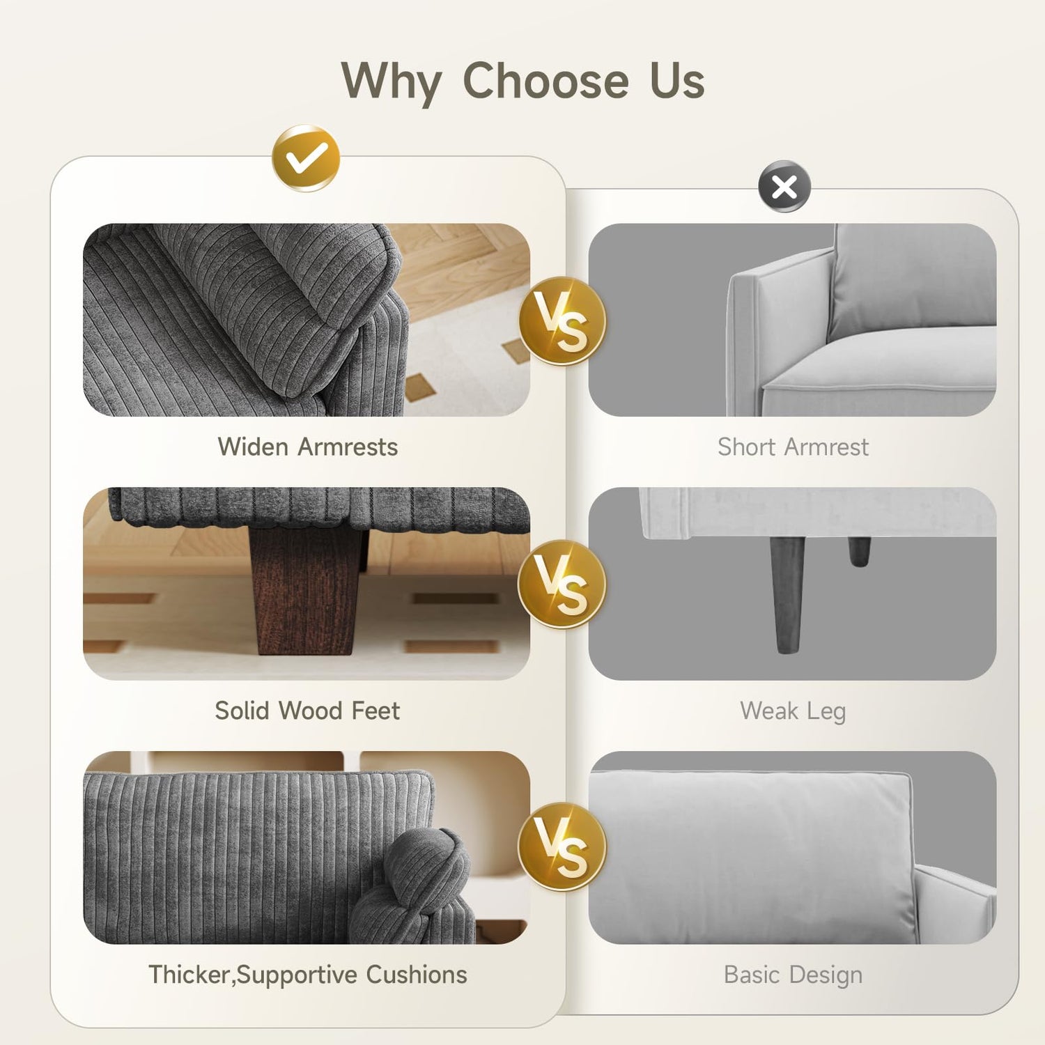 ONBRILL 77" Modern Loveseat Sofas for Living Room,Comfy Cloud Couch with Deep Seats,Solid Wood Frame,Corduroy Fabric Couches for Living Room,Bedroom and Small Spaces