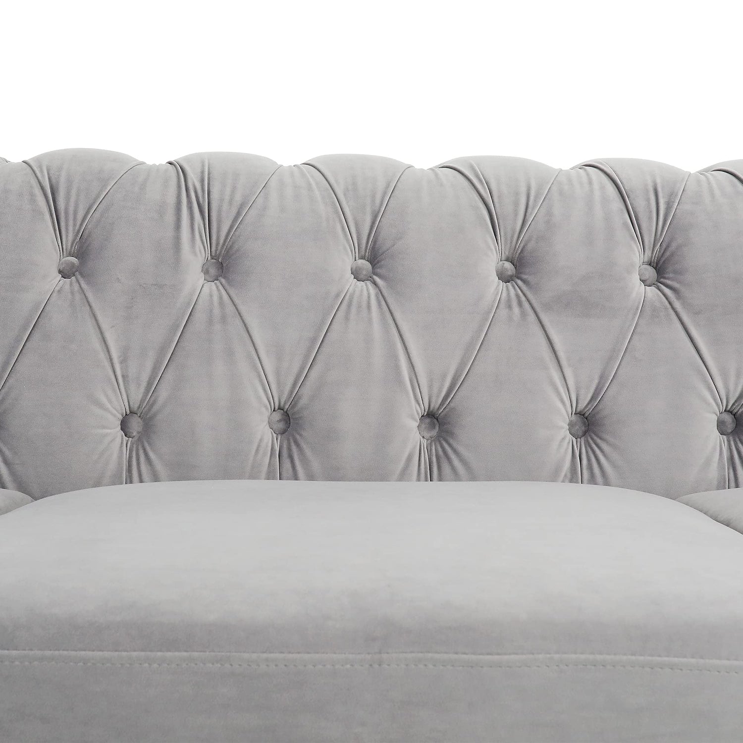 ONCIN Velvet Chesterfield Sofa, 84'' Modern Tufted 3 Seater Couch with Scroll Arms and Wood Legs for Living Room Bedroom (Gray), Grey Velvet, 84 In Chesterfield Sofa