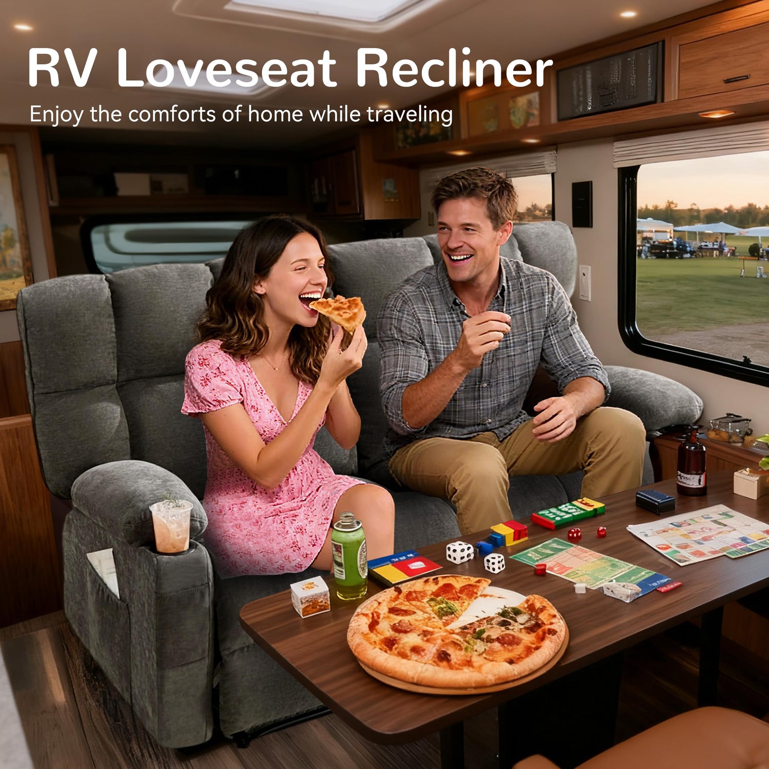 Oversized Loveseat Recliner Sofa, Big Large Reclining Sofa with Cup Holders & Side Pockets, Traditional 2-Seater Manual Recliner Couch for Living Room, RV, Home Theater (Fabric, Grey)