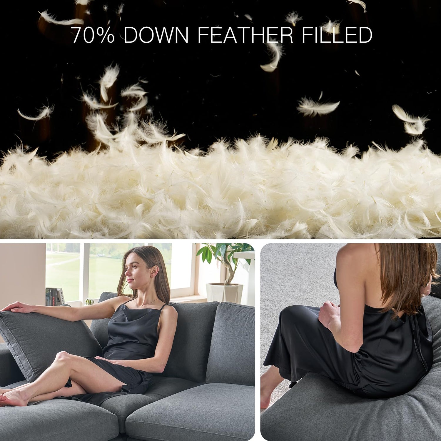 - 70% Down-Filled: Thanks to fluffy down-feather filled cushion and back pillow, as you settle in, delicately conform to your every curve, enveloping you in snug embrace. Moreover, down-filled sofa ensure optimal breathability.