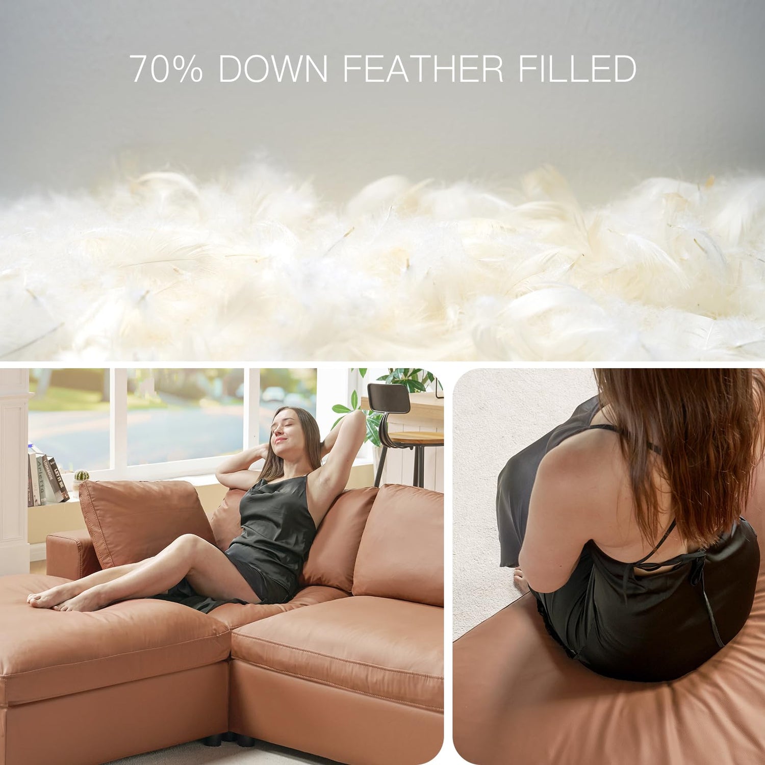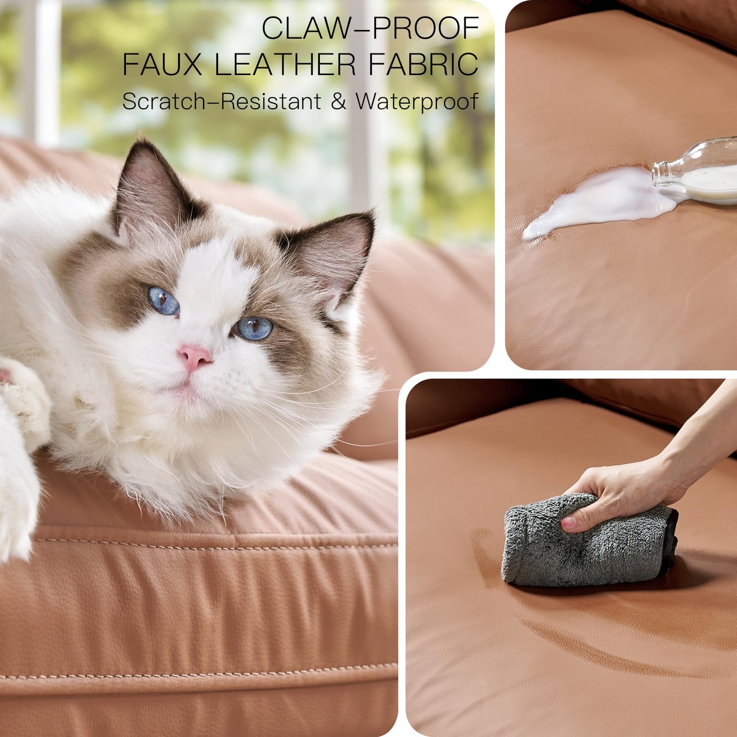• Stylish Yet Tough: Crafted from anti-scratch, waterproof Leathaire, down filling sofa combines elegance with durability, resisting wear from playful pets. Ideal for families, allowing quick stain removal with one gentle wipe.
