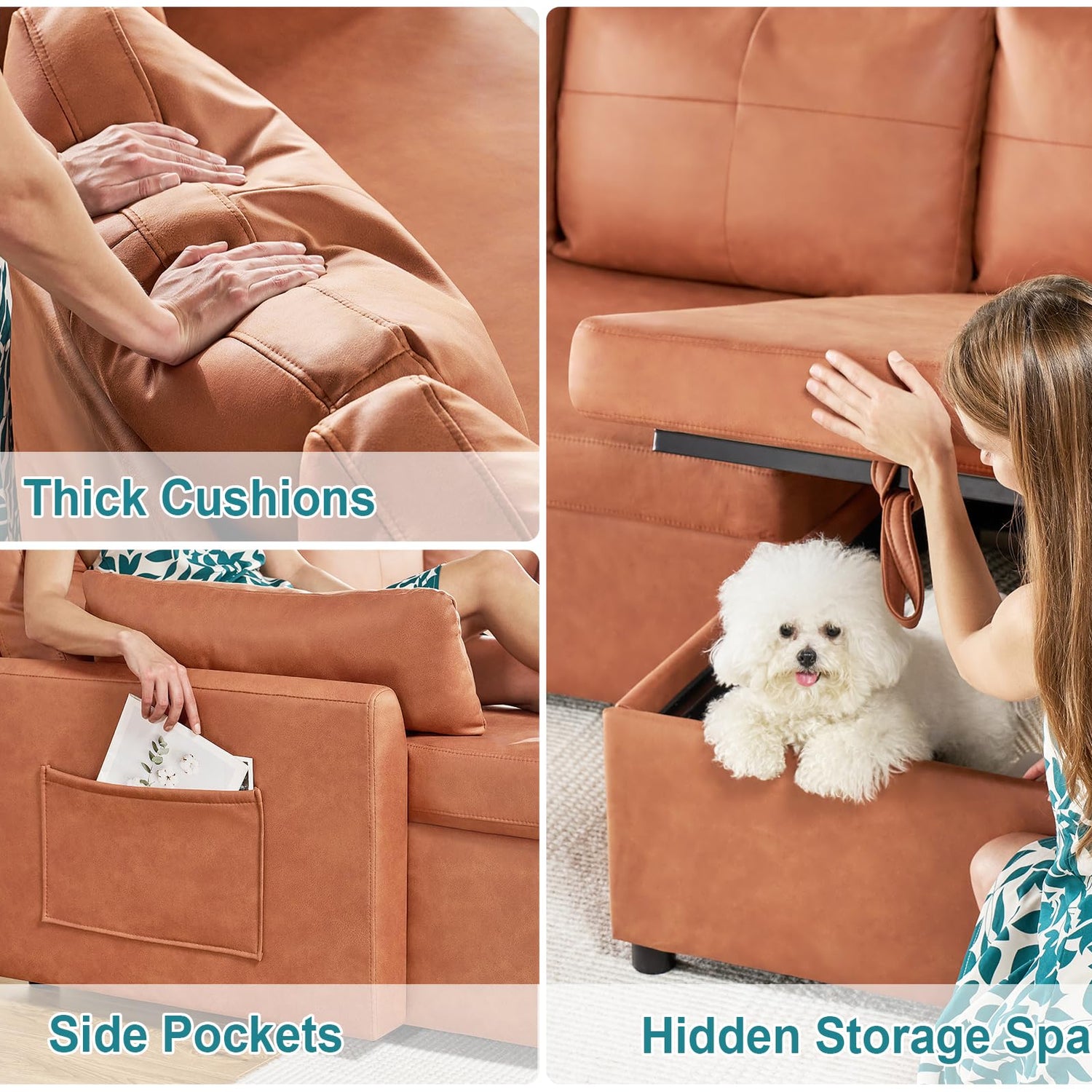 - 【Ample Storage Spaces】Maximize your living room's organization with the generous storage compartments of this living room couch. It could store blankets, pillows or anything you want.
