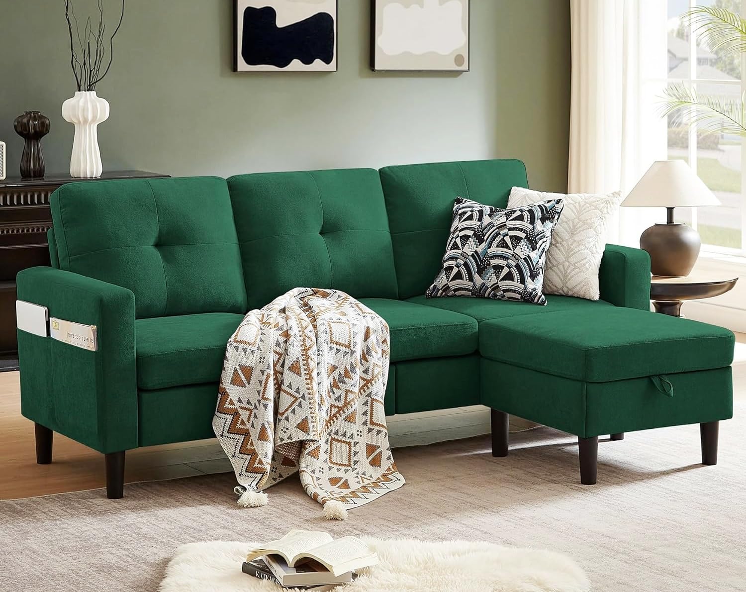 - SPACE-SAVING STORAGE COUCHES - Our sectional couch features extra storage space within the ottoman and featuring convenient side pockets. You can easily store your remotes, magazines, and even snacks within arm's reach. It's all right there, neatly organized and at your fingertips.
