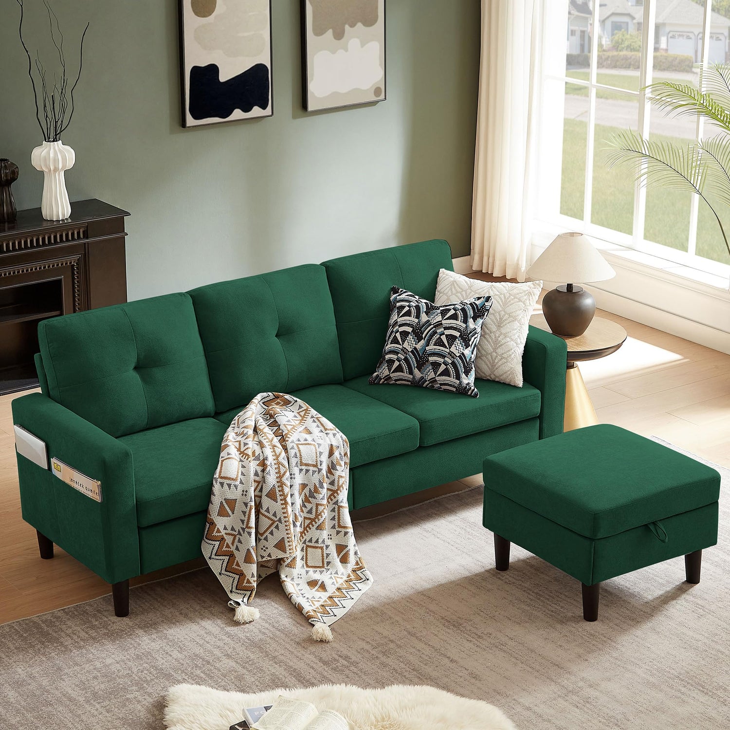 Pingliang Home Sectional Sofa Couches for Living Room, Modular 3 Seats Sectional Sofas L Shaped Couch with Storage and Reversible Chaise, Linen Fabric, 79" (Green)