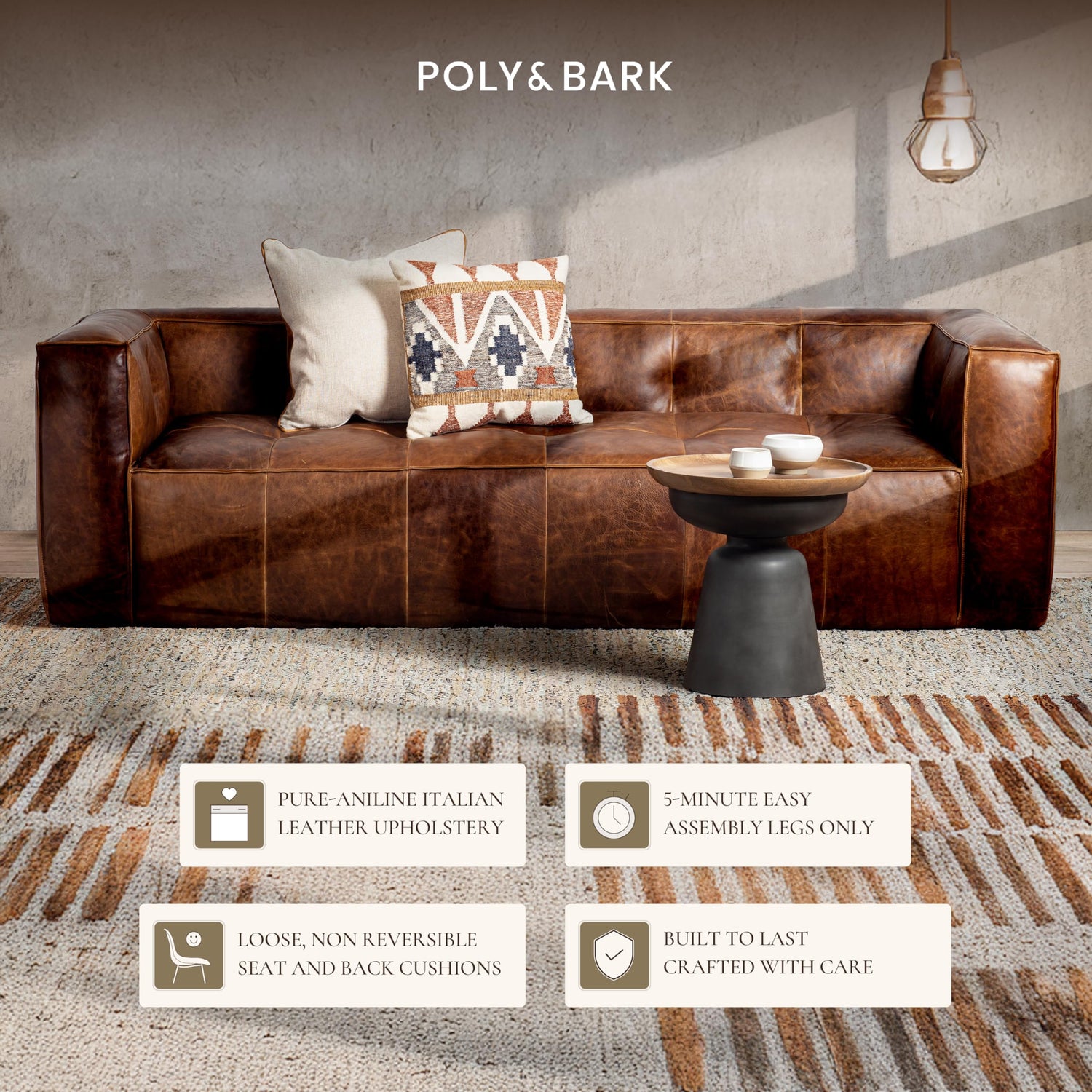 POLY & BARK Capa 92" Sofa – Chocolate Brown Full-Grain Pure-Aniline Italian Leather, Boxy Modern Design, Feather-Fiber Cushions, Solid Wood Frame