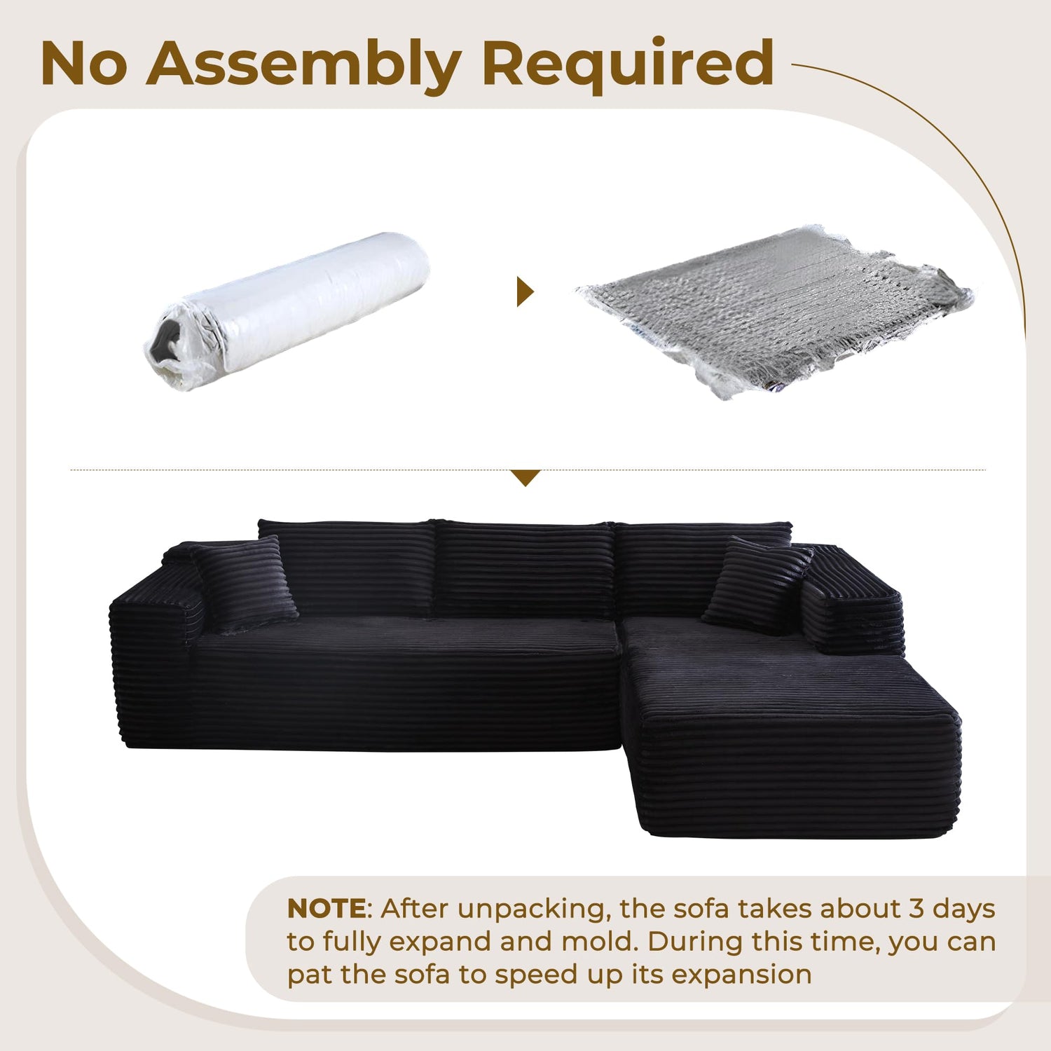 POUUIN 104" L-Shape Modular Sectional Sofa Couch - Comfy Upholstered Cloud Couch for Living Room - Modern Minimalist Couch,Deep Seat,No Assembly Required (Black,Plush Corduroy, Right Facing Chaise)