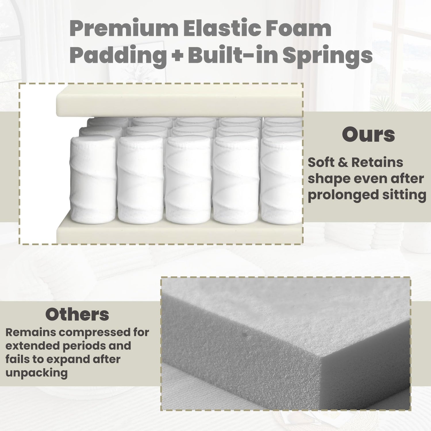 - PREMIUM SUPPORT: The curved couch has high-density foam cushions with built-in springs to adapt to your body shape, superior support to experience cloud-like softness, and a chenille fabric that provides a velvety touch to ensure you are comfortable and cozy while watching a movie or at a family gathering.