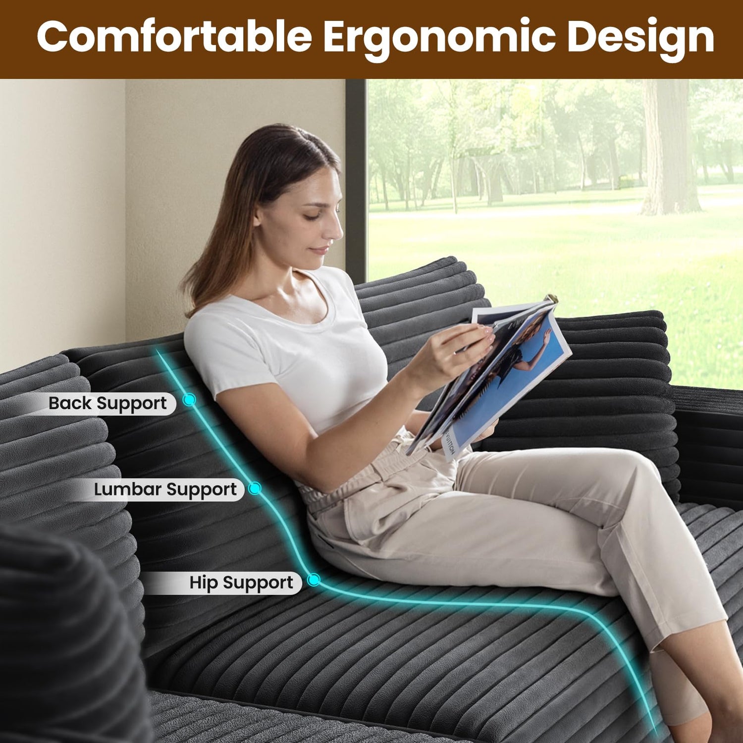 • PLUSH CORDUROY UPHOLSTERY, EASY-CARE — Breathable ribbed corduroy is soft yet durable for daily use. Pet-friendly maintenance: most hair lifts with a lint roller; quick spot clean keeps the upholstered couch fresh and inviting.