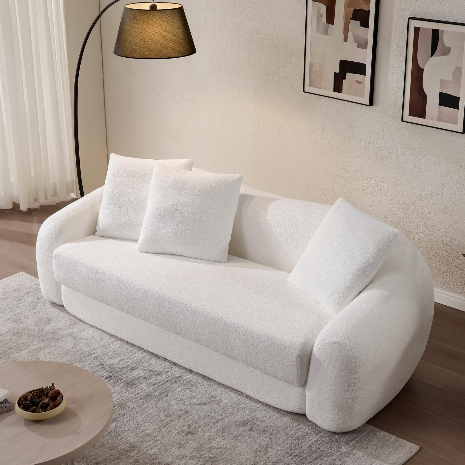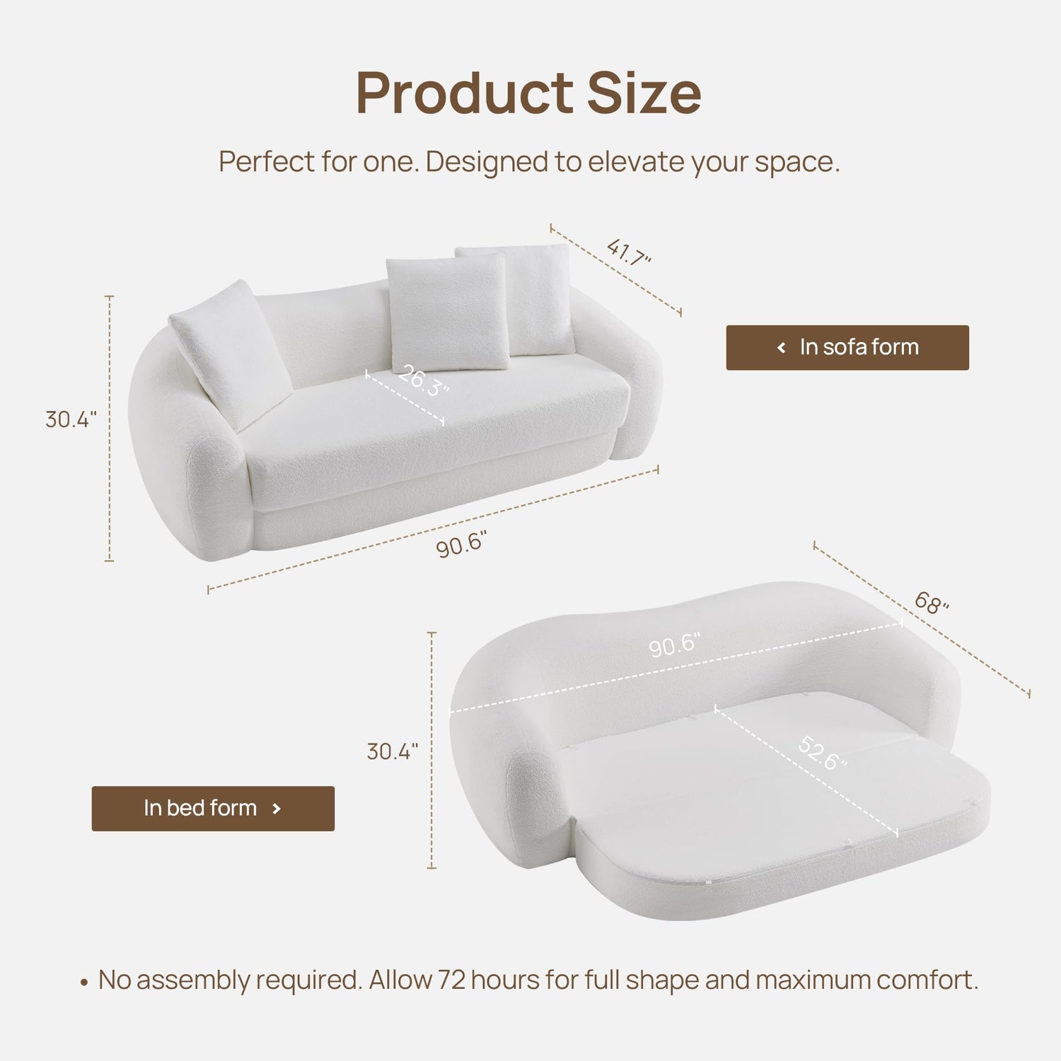SICOTAS 90.6" Curved Convertible Sofa Couch Bed for Living Room Futon Cloud Boneless Sleeper Sofa Pull Out Floor Couch with Deep Seat Modern 3 Seater Foam Bed No Assembly for Bedroom Apartment, White