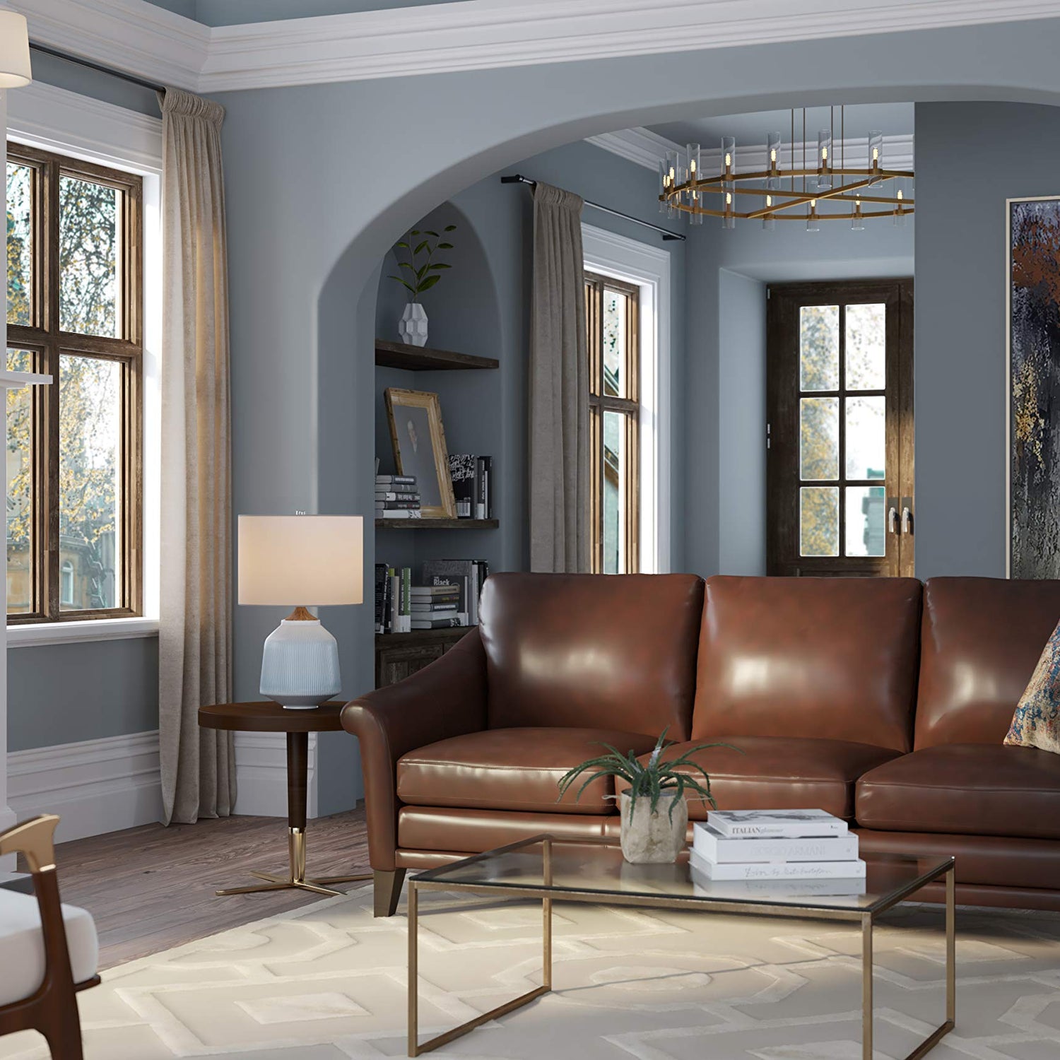 Sienna 100% Genuine Leather Midcentury Modern Sofa, Brown