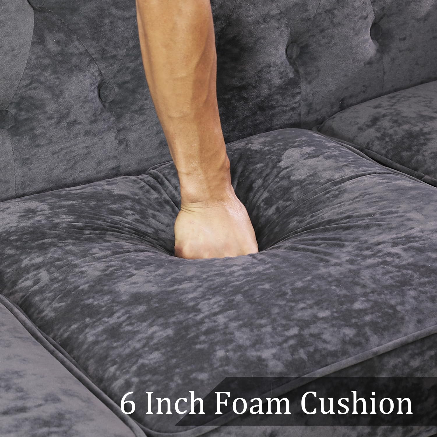 - 👪️Chesterfield Sectional Sofa Fabric: This sectional couch living room sets expertly upholstered in premium quality Velvet fabric, and the plush texture of this velvet creates a rich and luxurious feel.Provides you and your guests an ultimate feeling of joys.